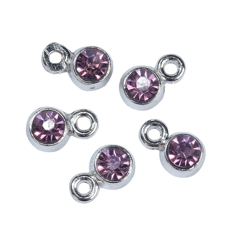 30 Rhinestone Channel Set Charm Drops, LAVENDER PURPLE, silver metal 9x6mm, chs3127