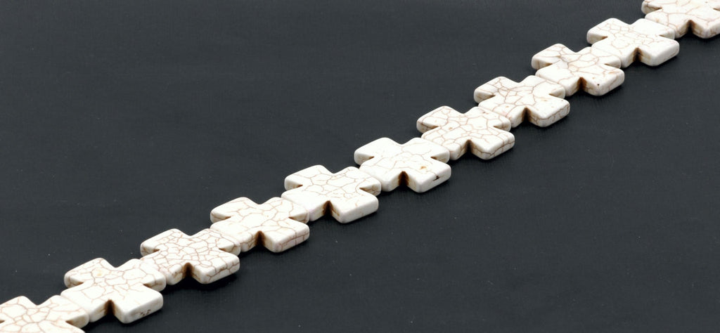 35mm WHITE MALTESE Cross Beads, Magnesite Howlite, full strand, 11 beads how0406