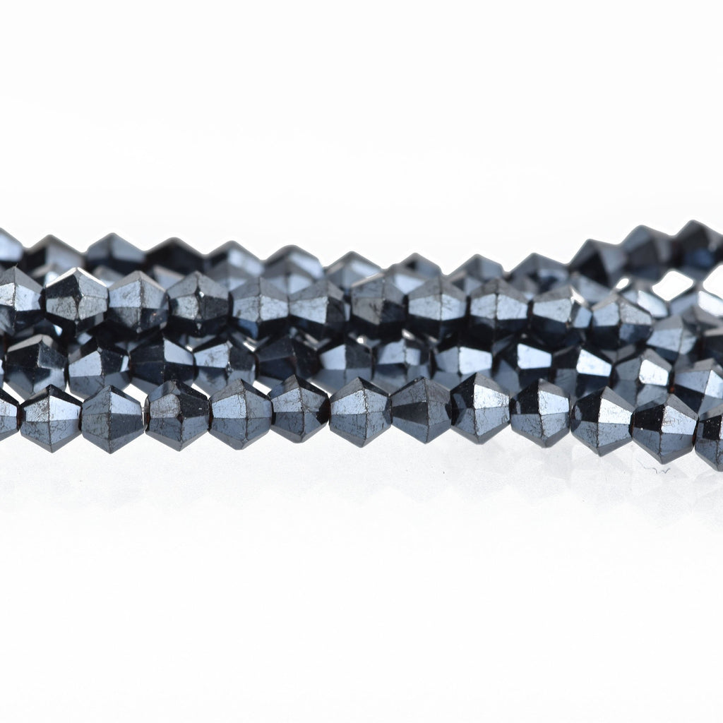 3mm BLACK HEMATITE Bicone Glass Crystal Beads Transparent Faceted x100 bgl1676