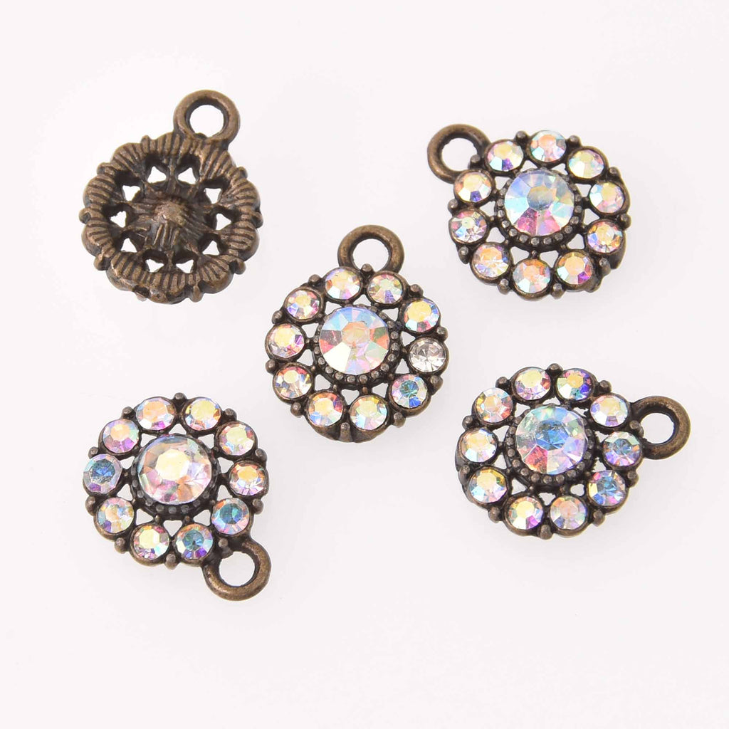 4 Bronze Crystal Charms, 12mm round Rhinestone charms, chs7776