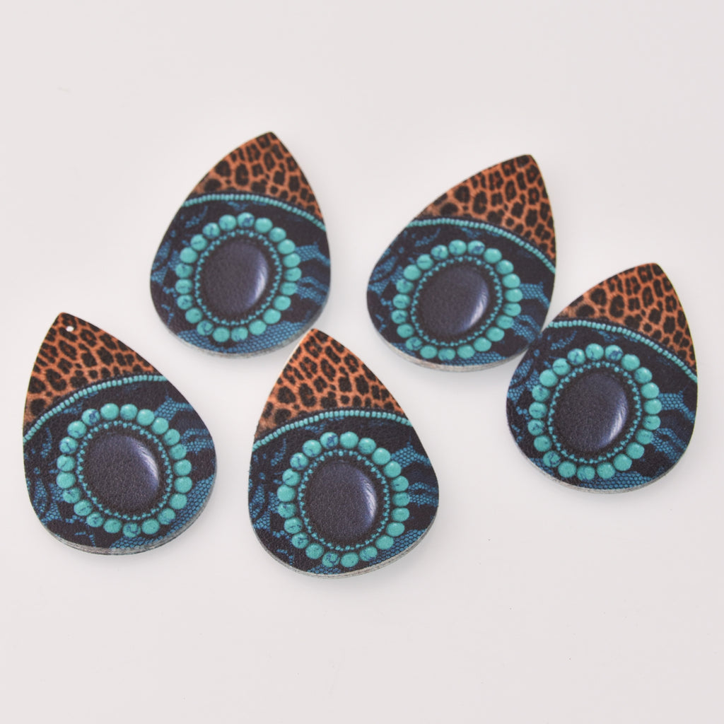 4 Faux Leather Teardrop Charms Western Vegan Leather Pendant 2-1/4" long chs8088