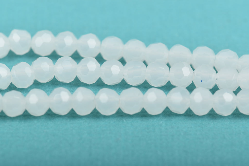 4mm WHITE OPAL Glass Crystal Round Beads, Opaque Faceted Beads, 100 beads, bgl1564