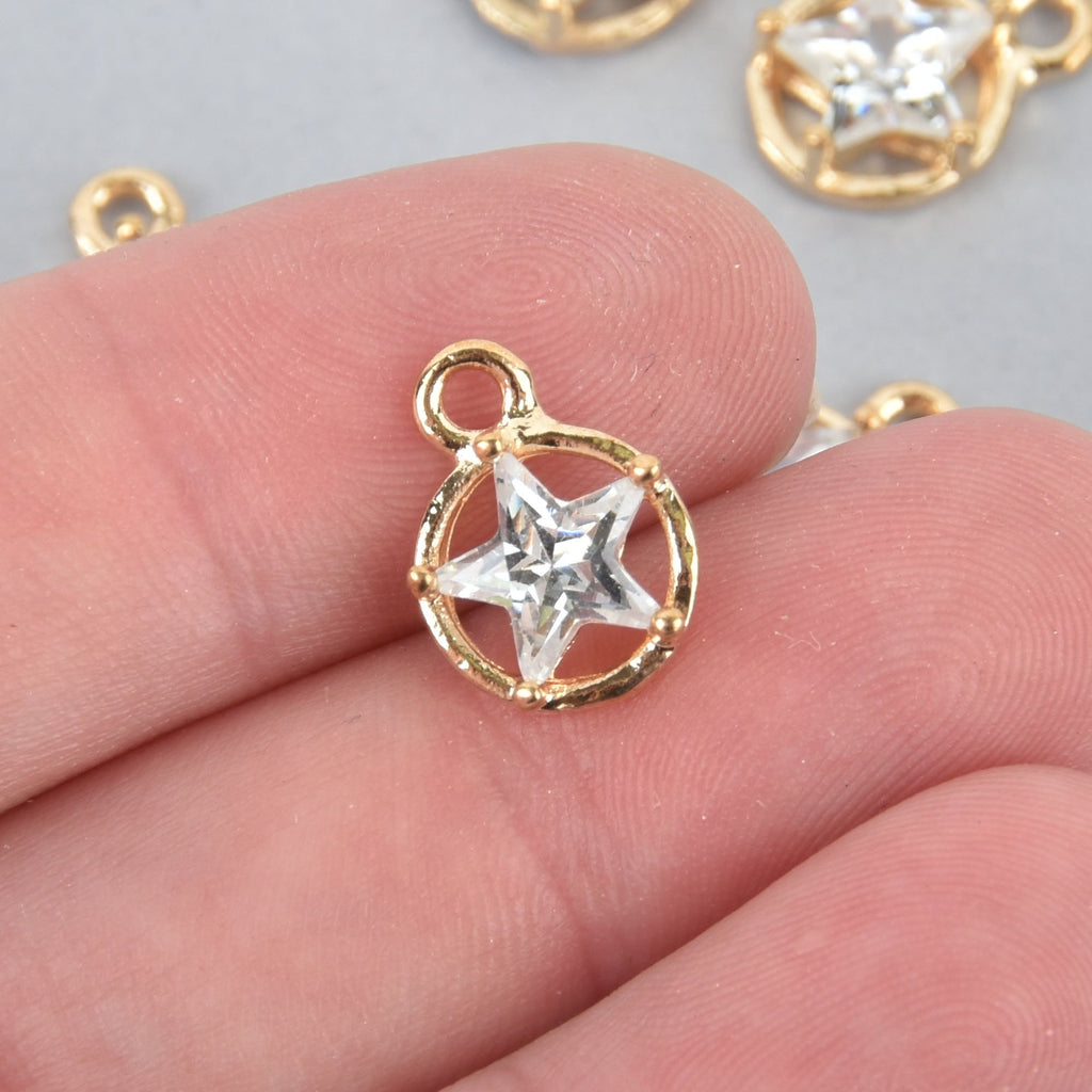 Gold plated crystal star charms with a lovely cutout design so the light shines through and gives the rhinestone star a lot of sparkle!