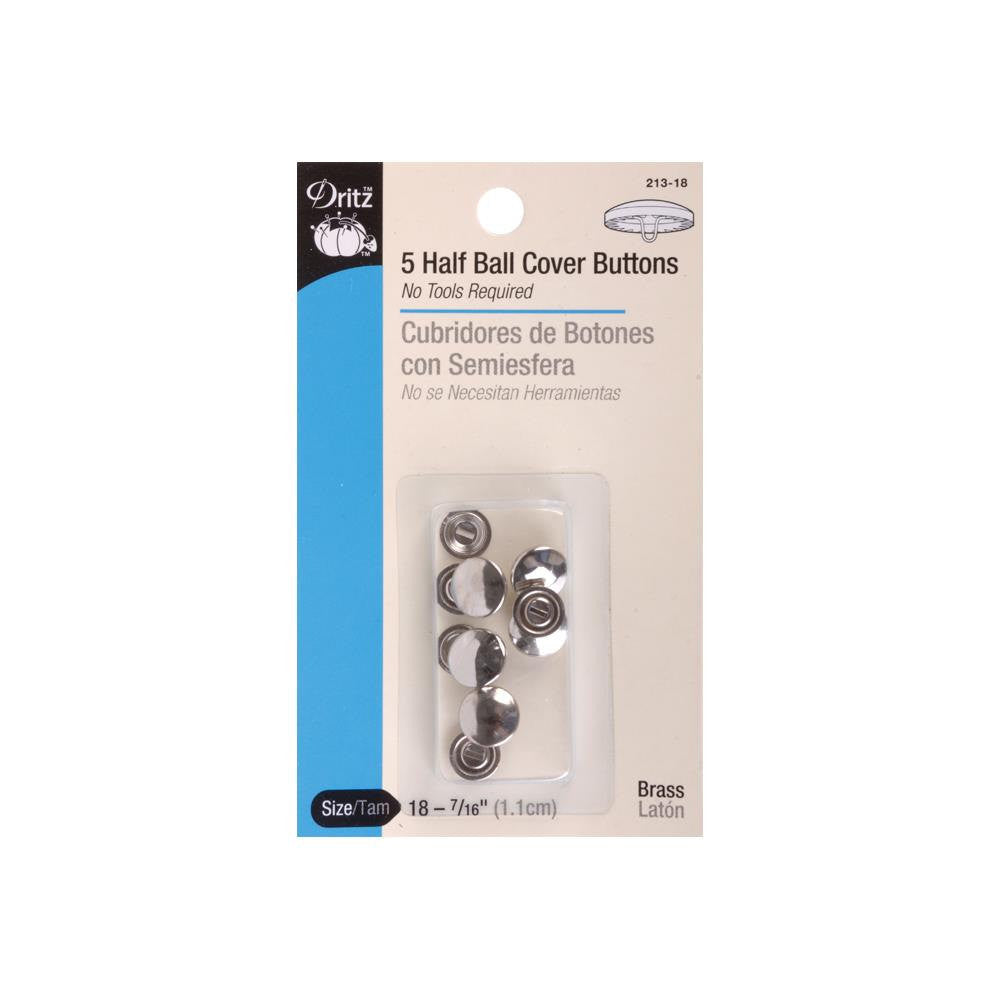 5 Half Ball Cover Buttons, Silver Brass, Size 18, 7/16", fabric button covers, but0254