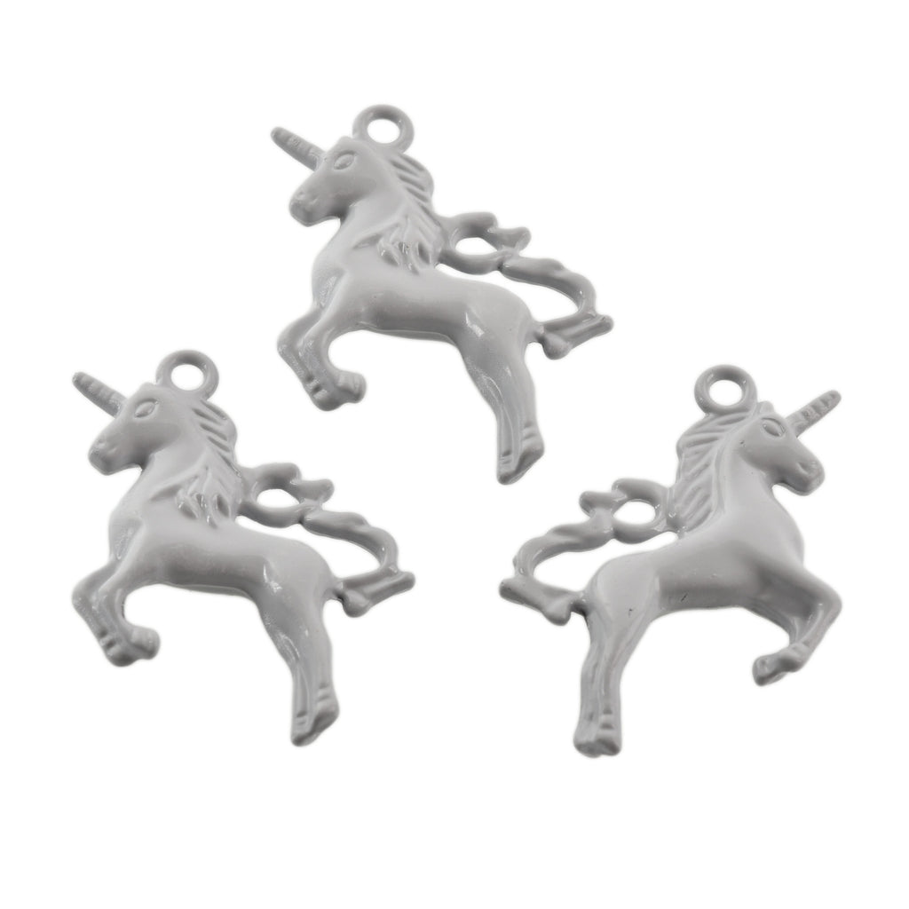5 UNICORN Charms, HEATHER GREY Enamel, Fairy Tale Charms, Animal Charms, 36x28mm, chs3350
