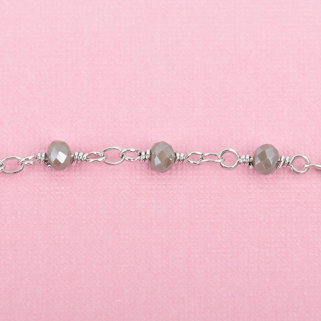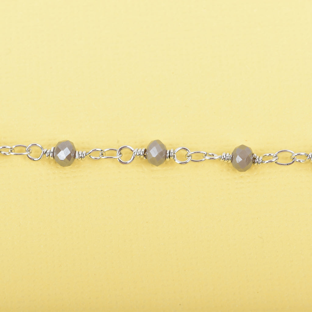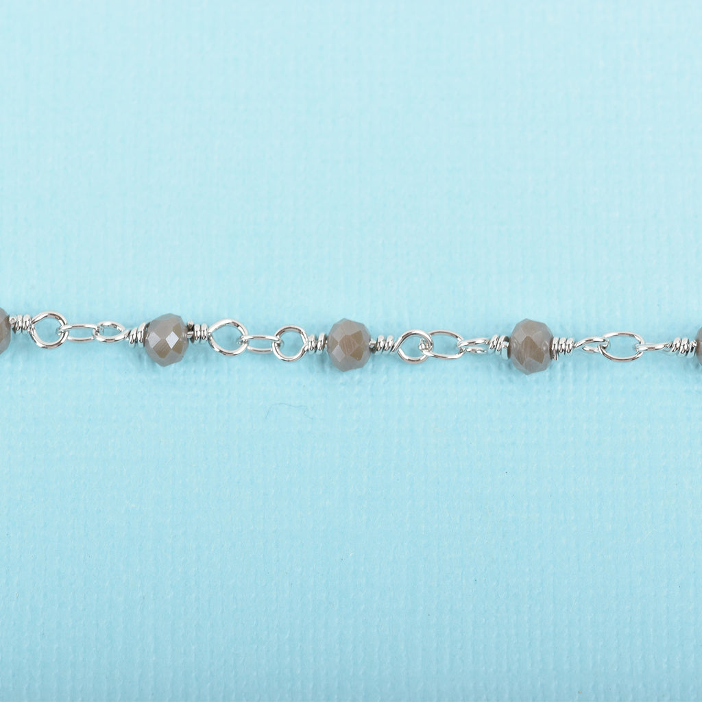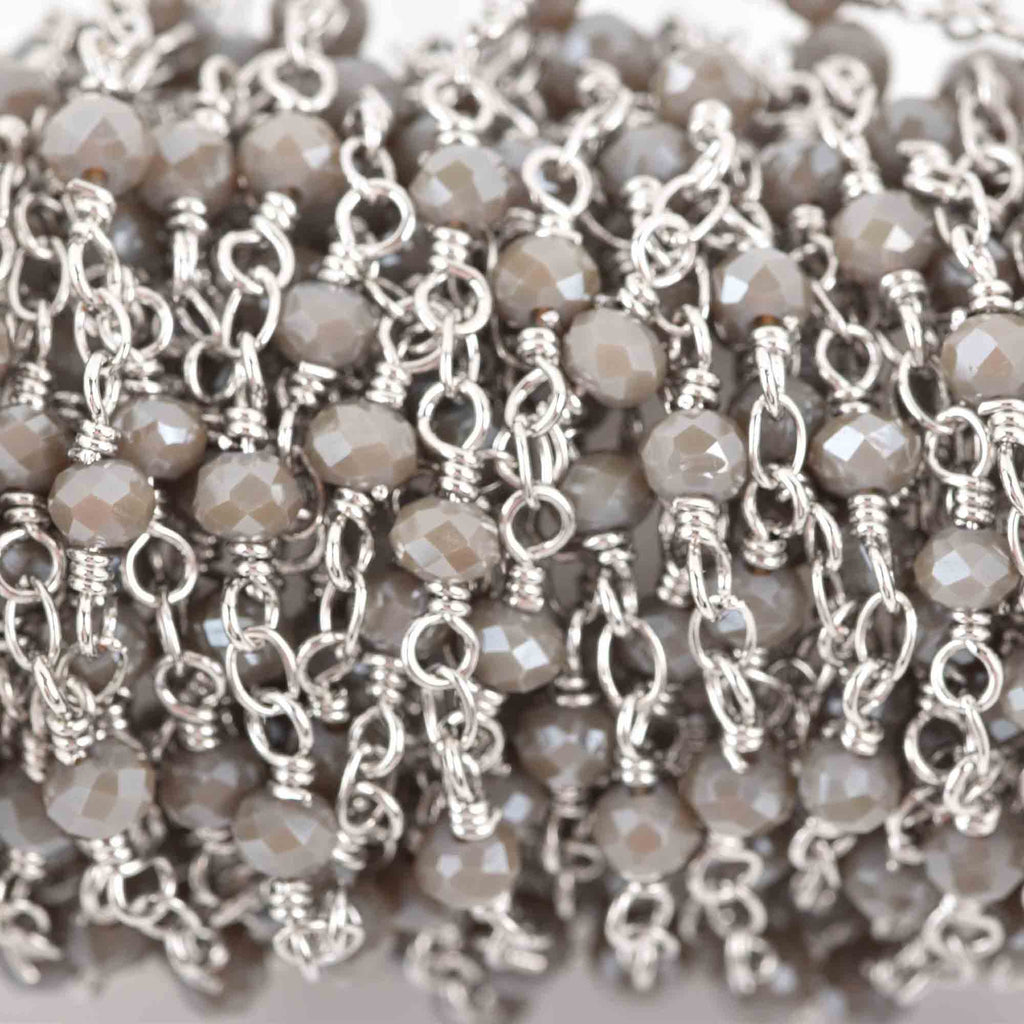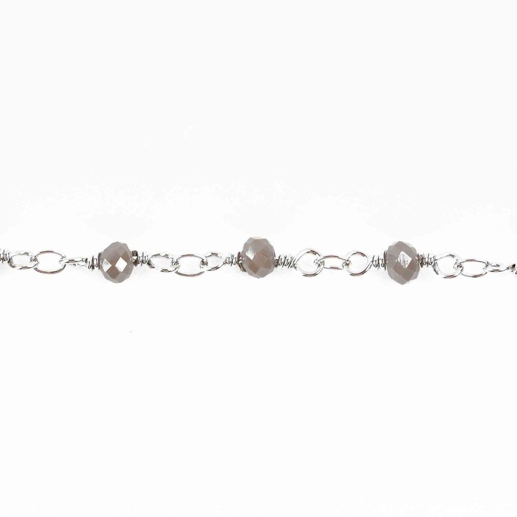 5 yards GREY Crystal Rosary Bead Chain, silver double wrapped wire, 4mm faceted rondelle glass beads, fch0625b