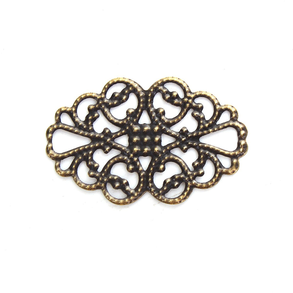50 Bronze Flat Filigree Flower Metal Embellishment Findings, 31mm, fil0078