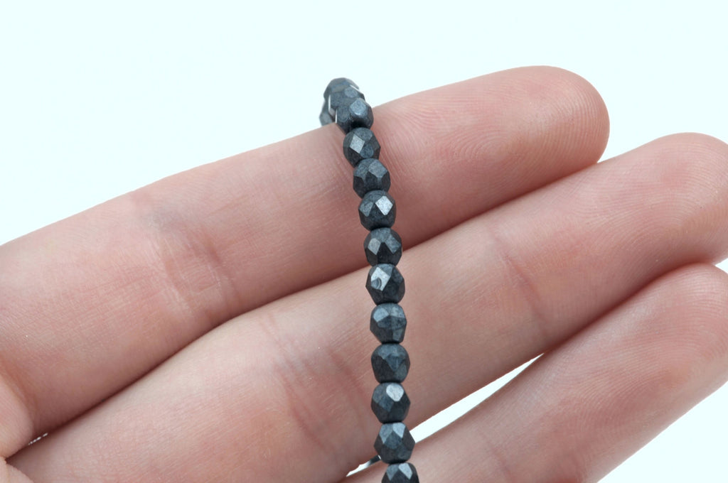 50 METALLIC GUNMETAL Fire Polished Faceted Rounds Czech Glass Beads 4mm bgl1368