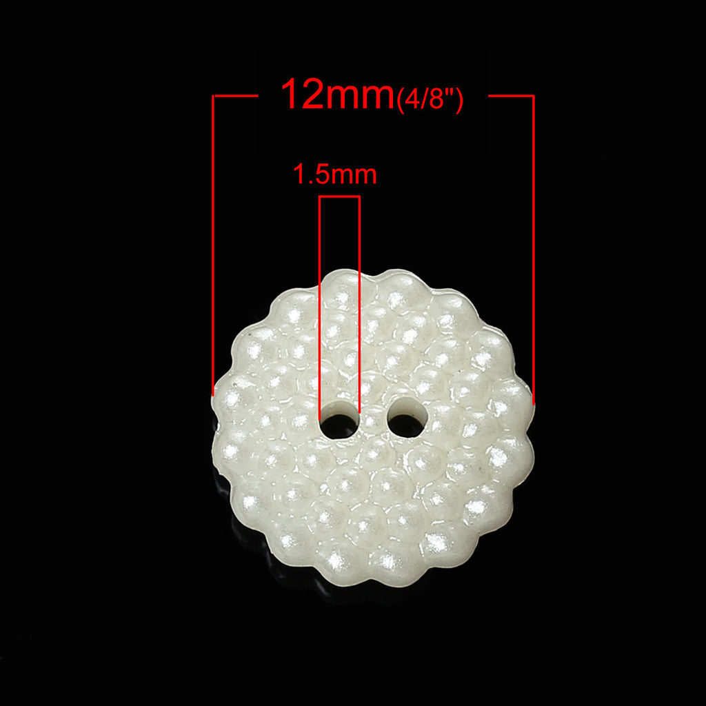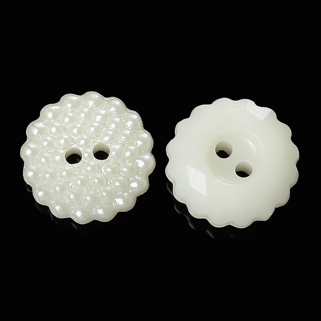 50 ROUND SCALLOPED CREAM Pearly Off-White Textured Buttons for Jewelry Making, Scrapbooking, Sewing, 2-hole 12mm (1/2") but0262