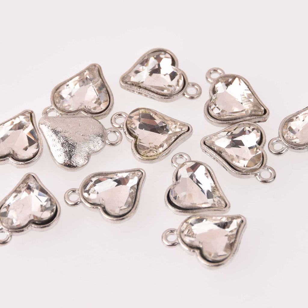 Clear crystal heart charms with silver bezel