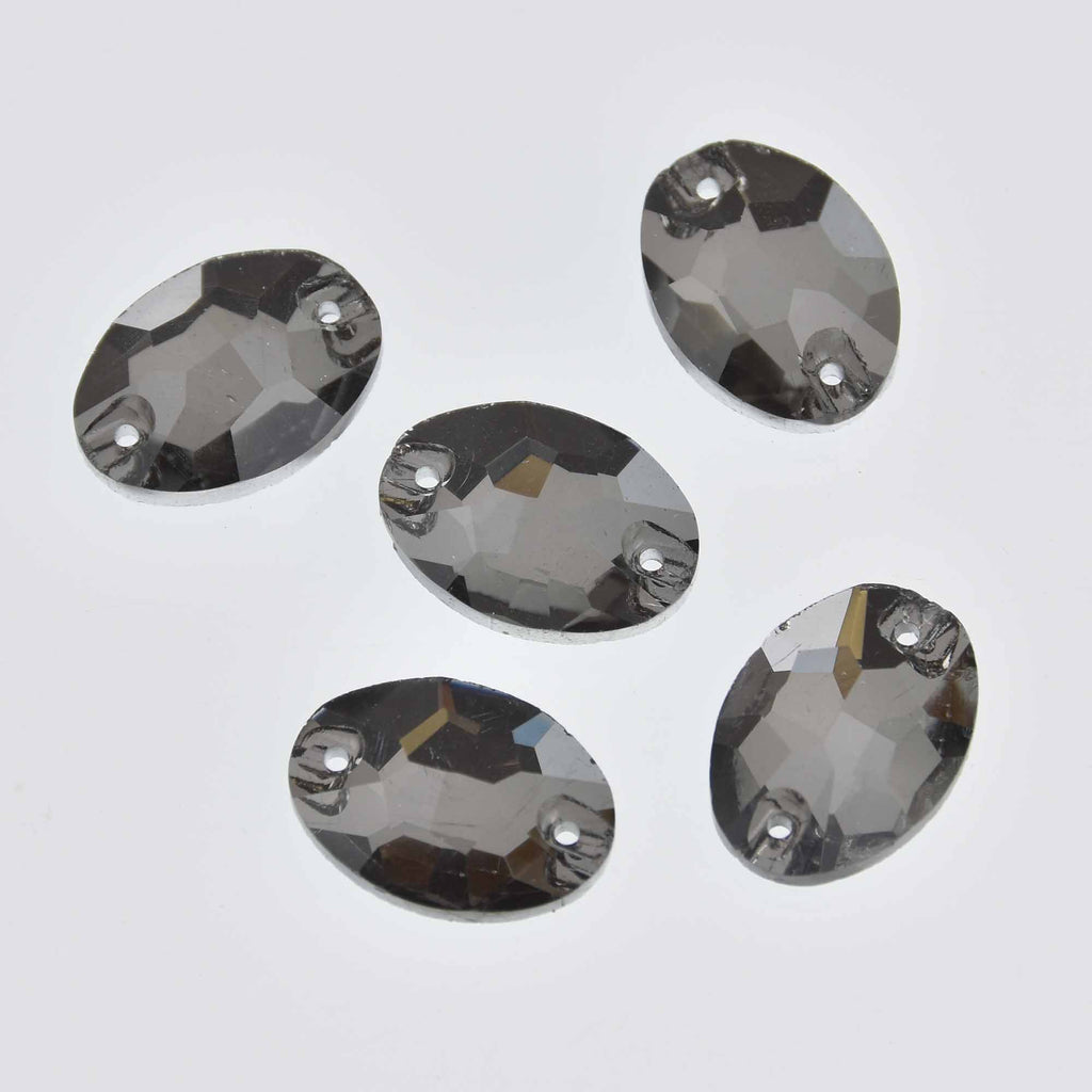 7 Smoke Crystals, Oval Faceted Flat Back, Sew On, 18mm x 13mm, Cabochons, cry0201