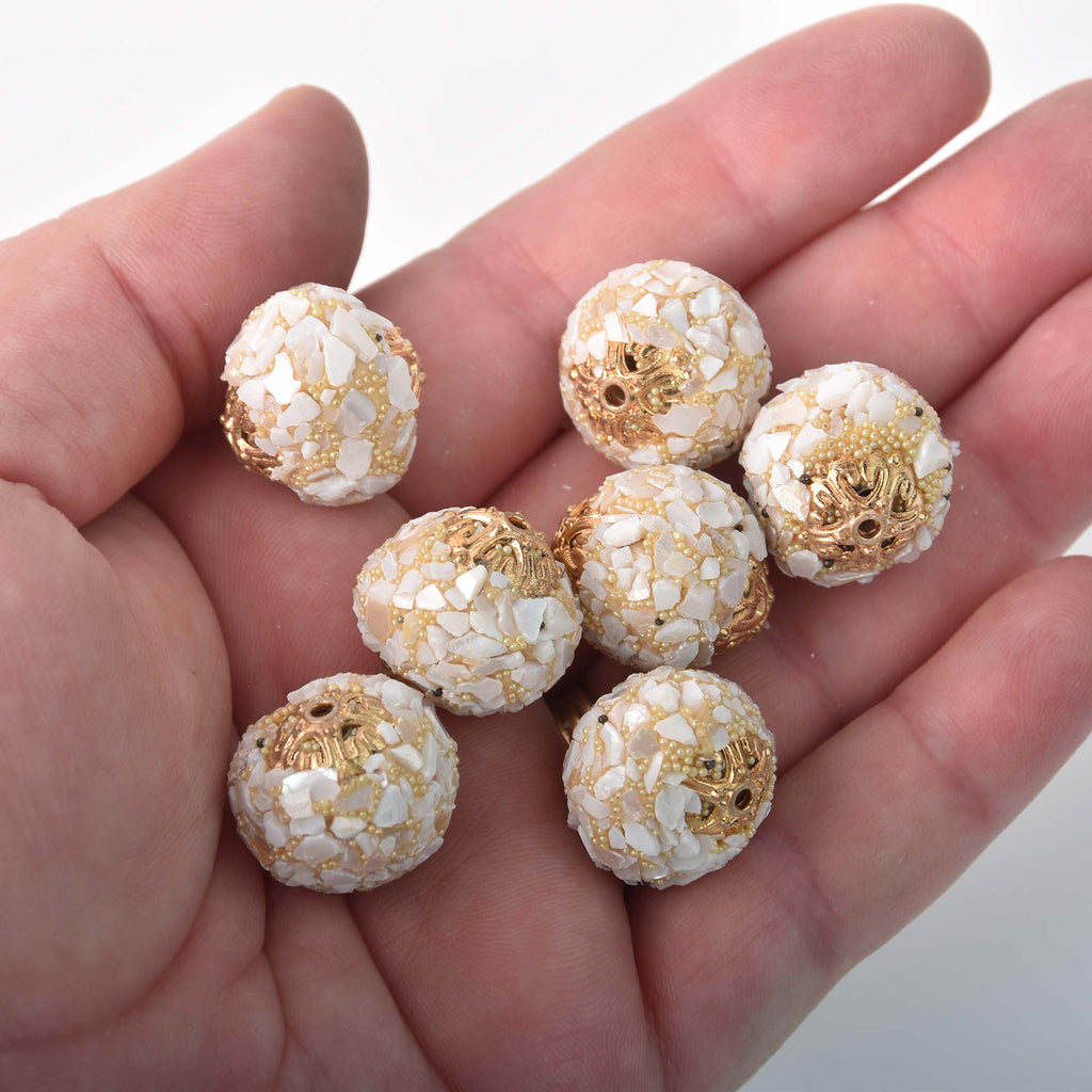 7 White Shell Indonesian Clay Beads, 18mm, bgl2088