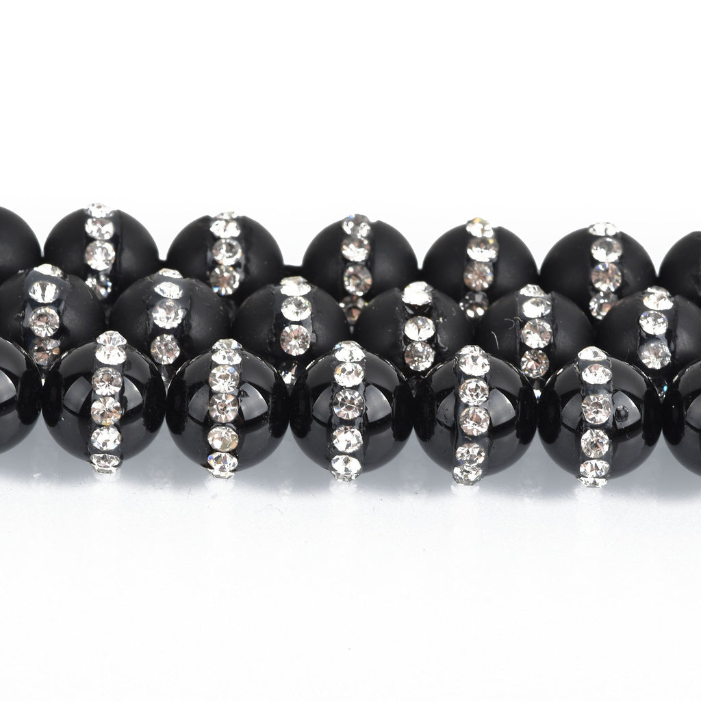 8mm BLACK ONYX Beads with Rhinestone Accents x5 beads gon0036