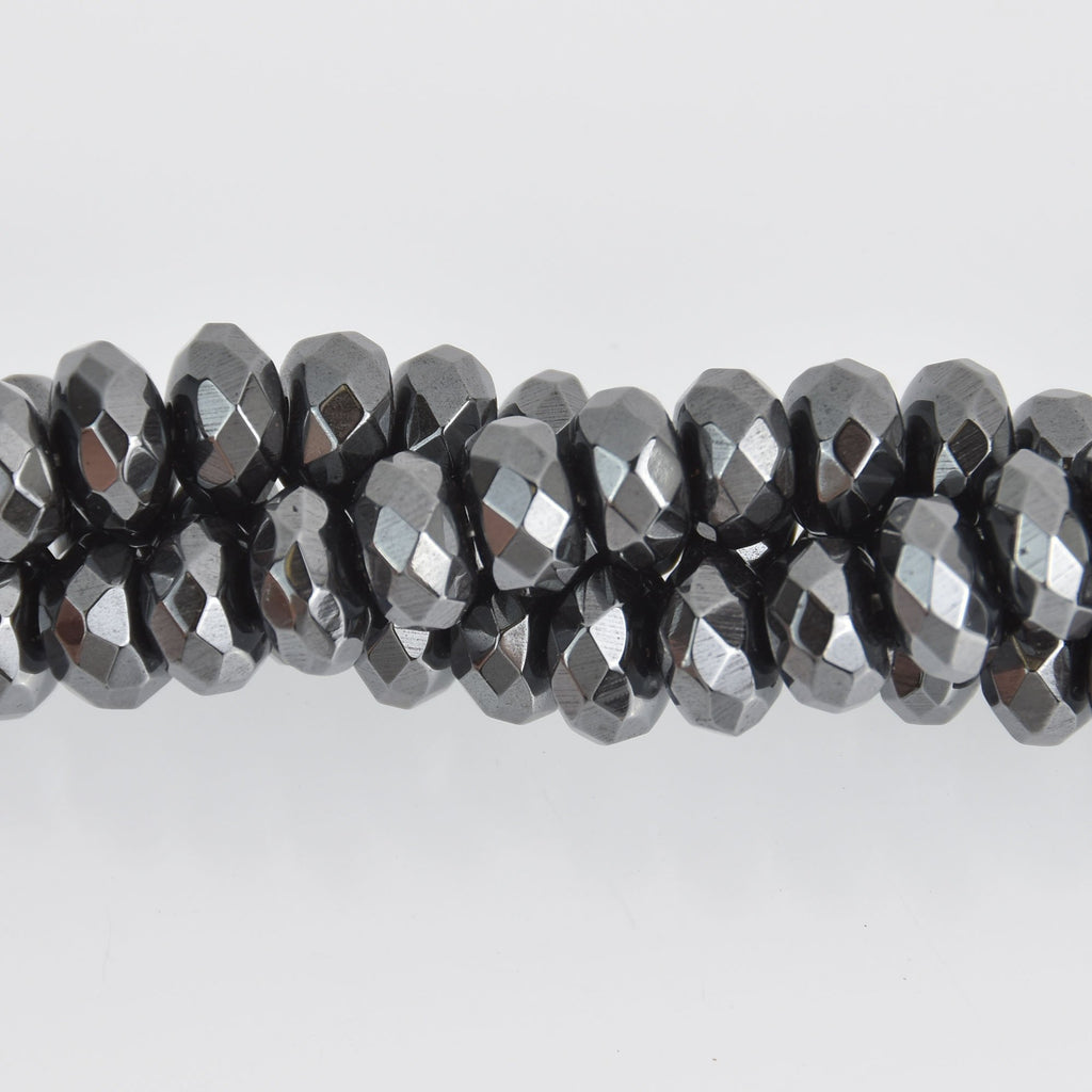 8mm Hematite Rondelle Beads, faceted gemstone, half strand, gem0578