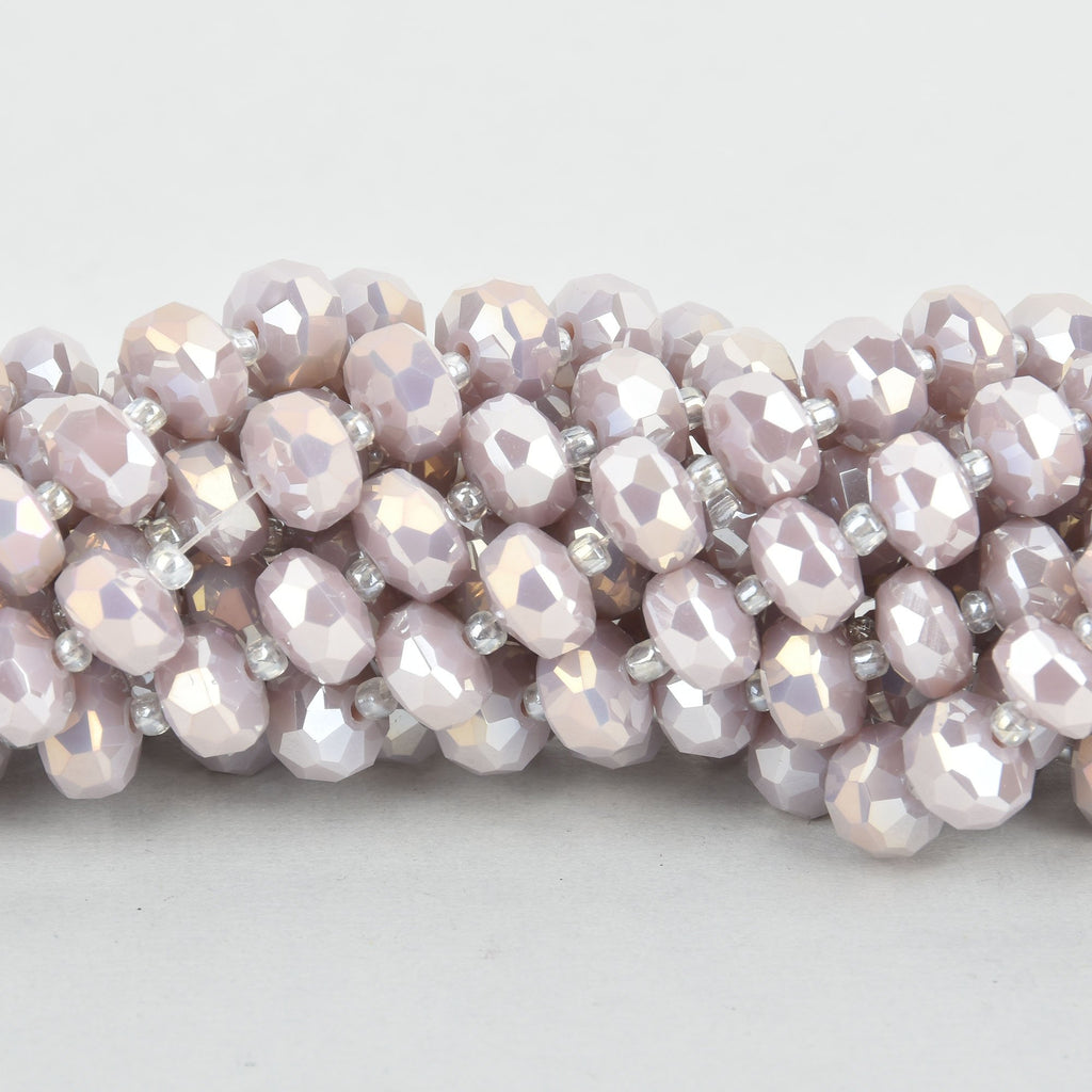 The rondelles are separated by clear AB glass seed beads (included).