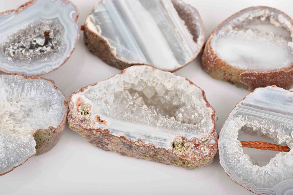 Stunning agate druzy gemstone beads, slab shape with lots of quartz/druzy inclusions.