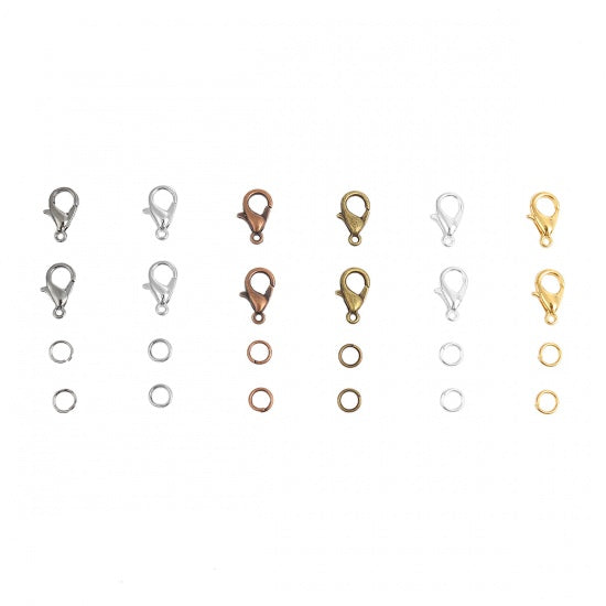 Quantity: about 120 lobster clasps; about 960 matching jump rings; 1 storage box