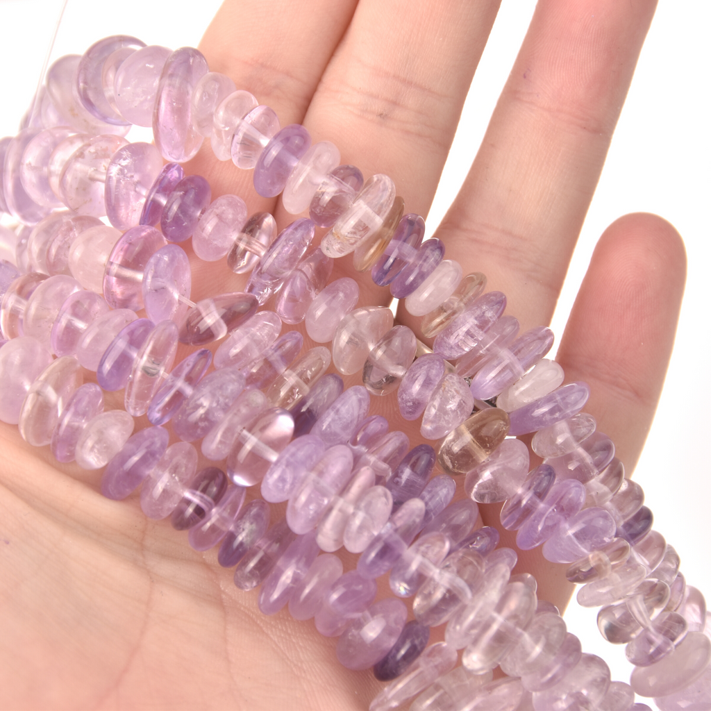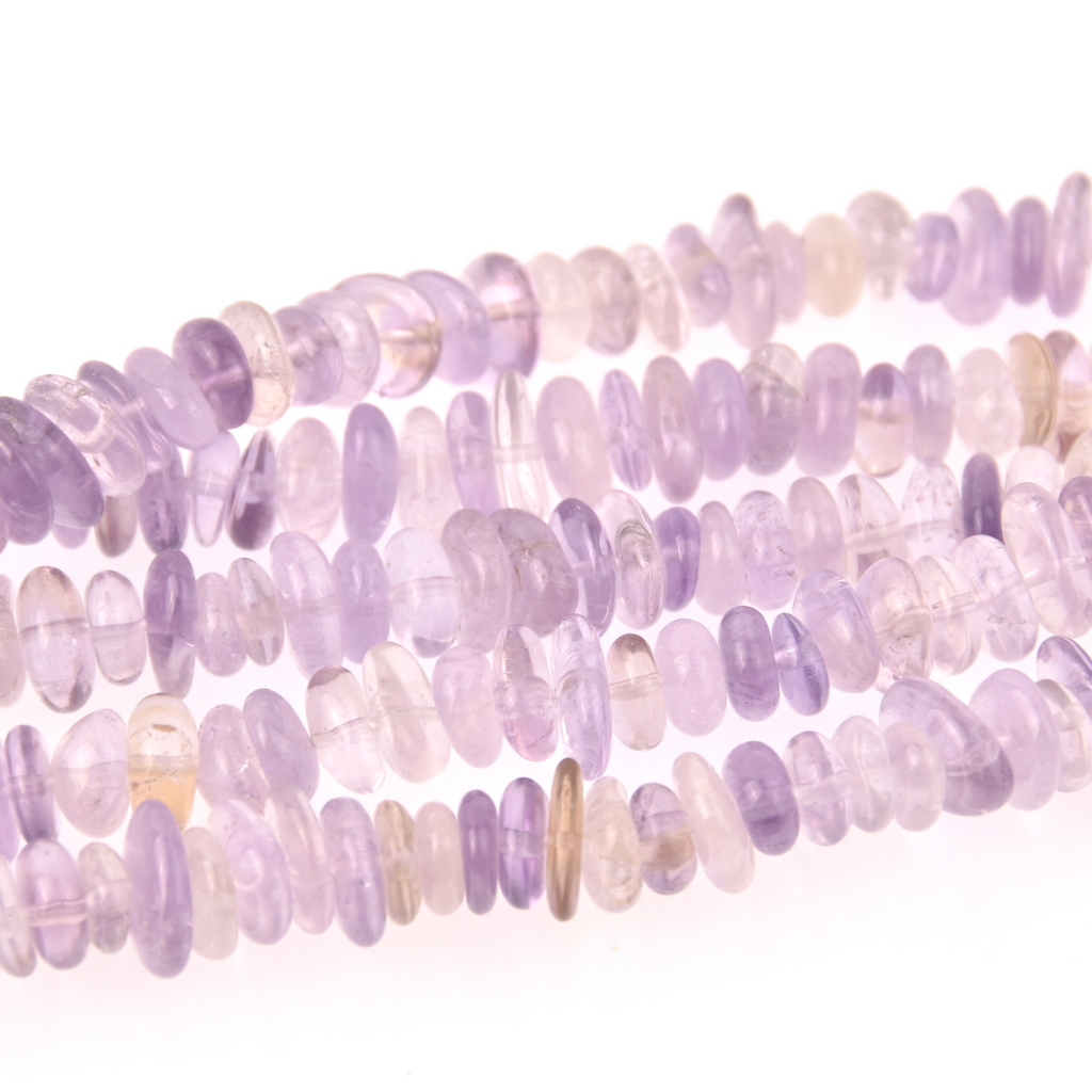 This beautiful stone is a naturally occurring mix of amethyst and citrine! You get a beautiful blend of darker purples, pale, almost clear beads, and gold all together. Mother nature sure knows what she's doing!