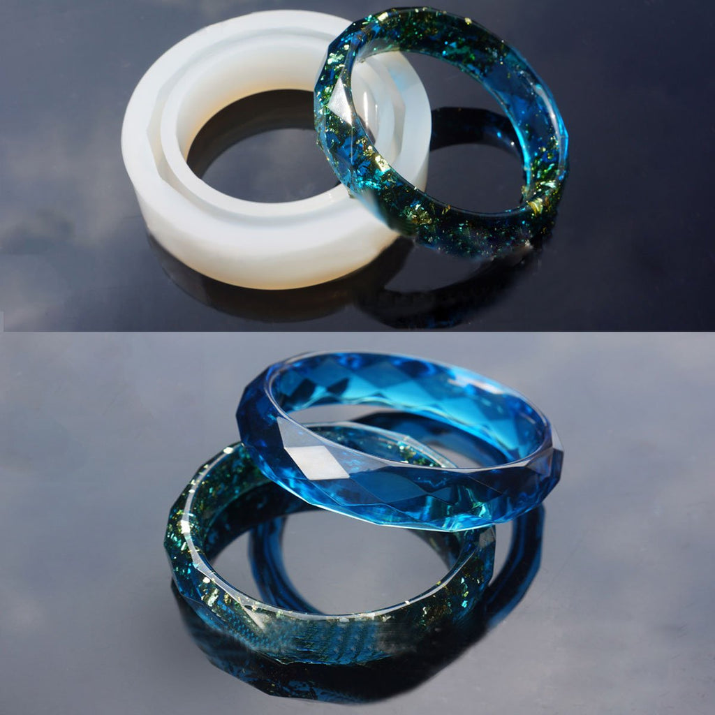 This silicone mold makes one faceted bracelet. It's made to pour resin into and let set, creating round bangles.