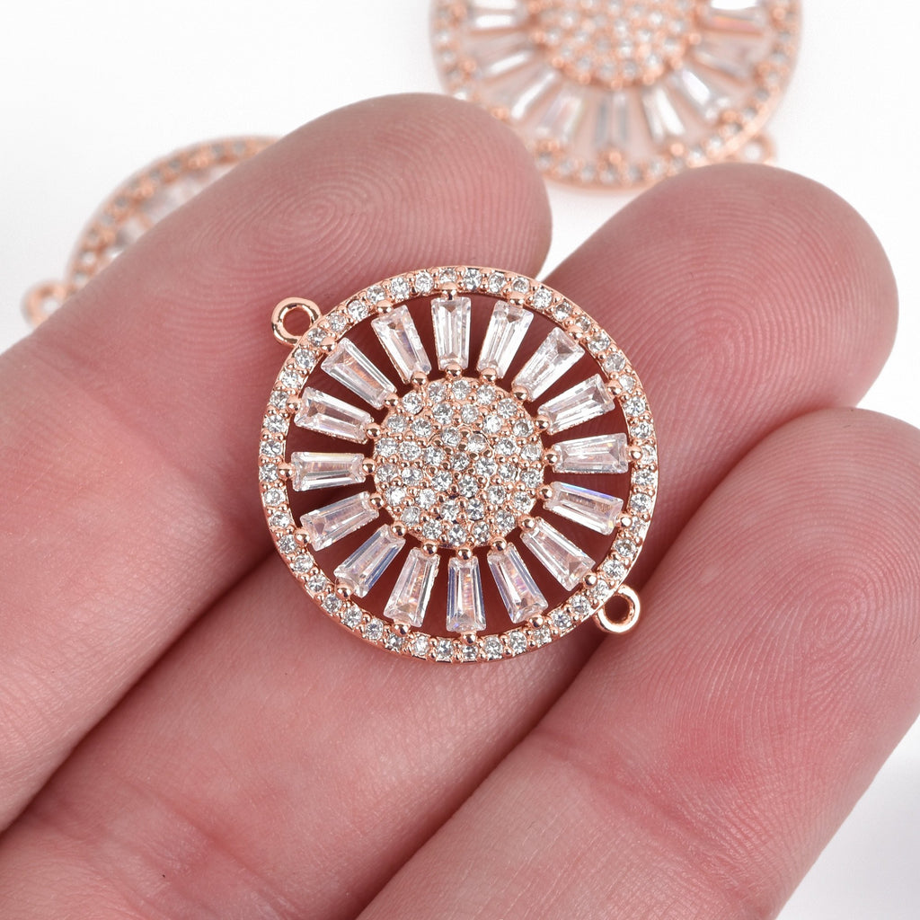 Gorgeous micro-pave charm connector with tiny hand-set cubic zirconia stones over the entire front of the design. Lots of sparkly rectangle baguettes and tiny round crystals.