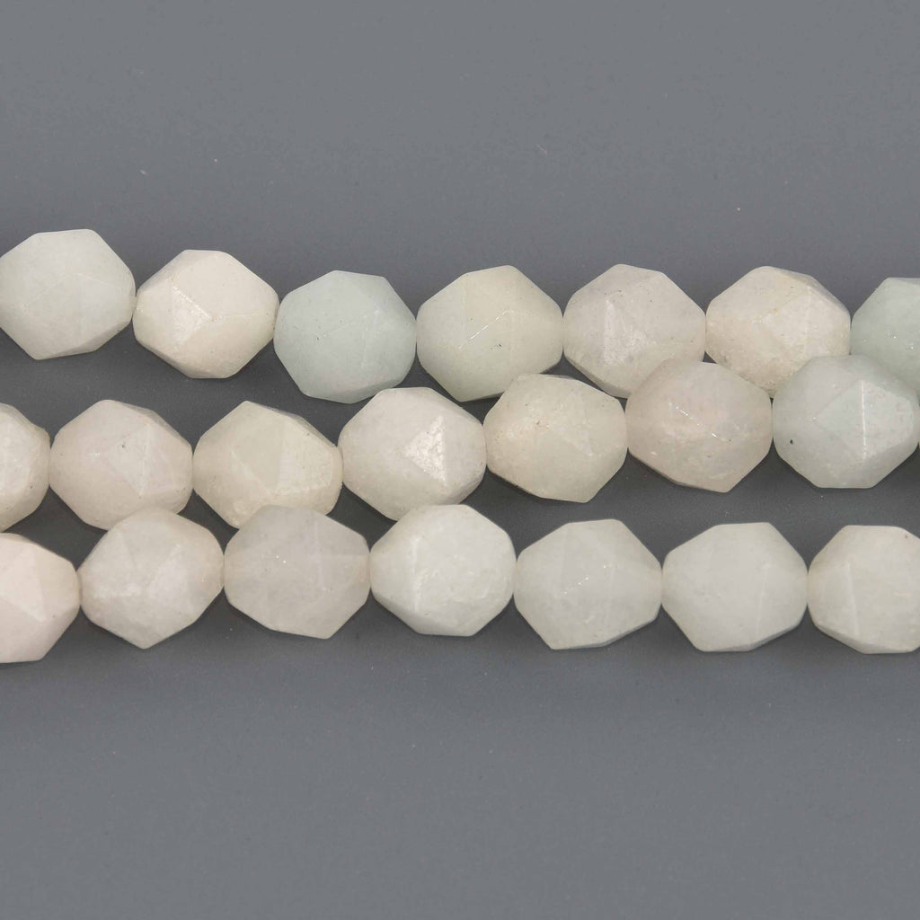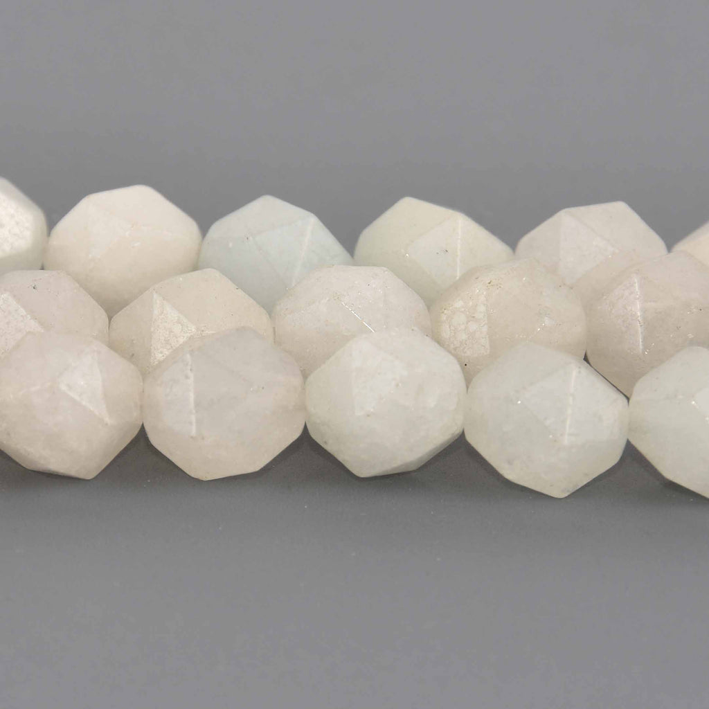 10mm White Morganite Gemstone Beads, Star Cut Round, 7.5" strand, gem0950
