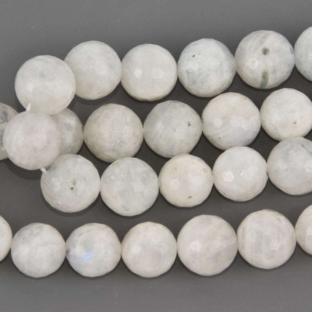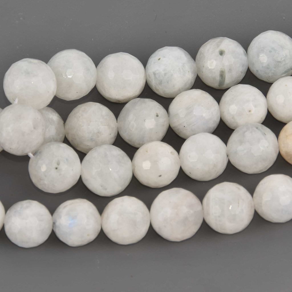 14mm WHITE RAINBOW MOONSTONE Round Beads, faceted gemstones, full strand, gem0883