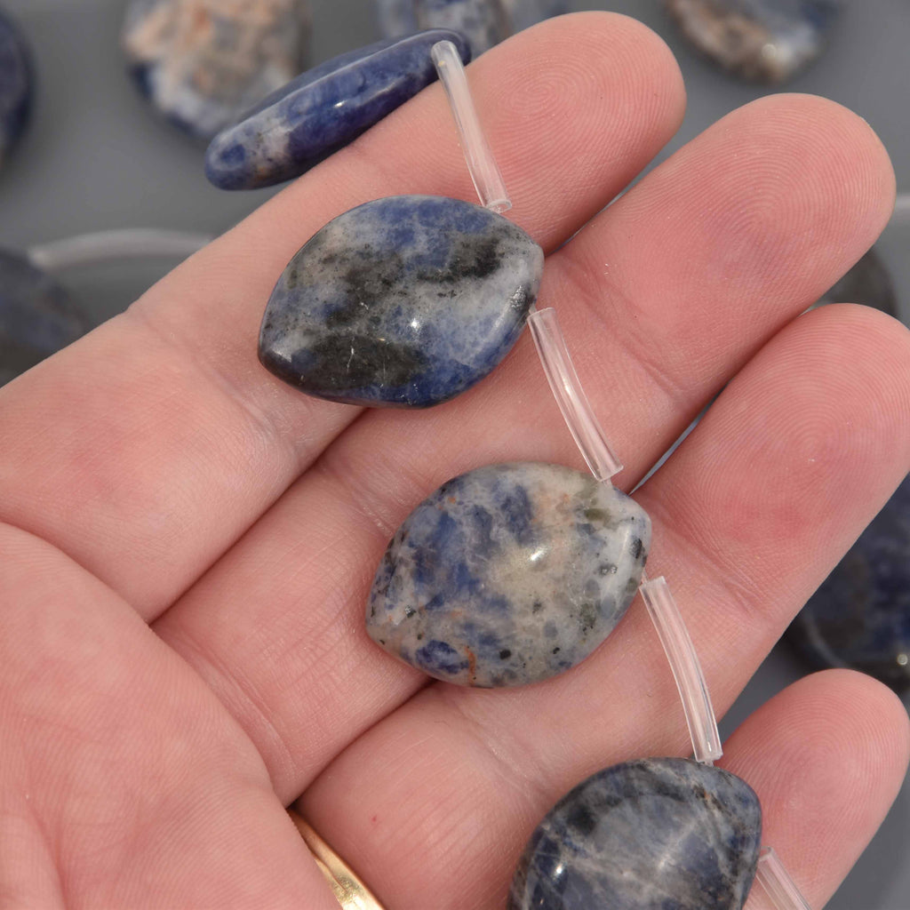 25mm Blue Sodalite Beads, Spindle Gemstone, 8" strand, gem0939