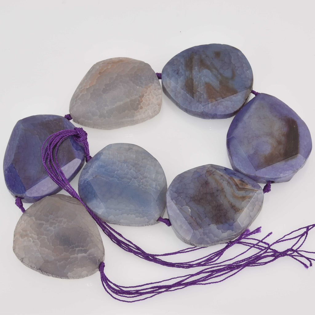 50mm PURPLE AGATE Gemstone Beads, Flat Asymmetrical Slab Beads, gem0878