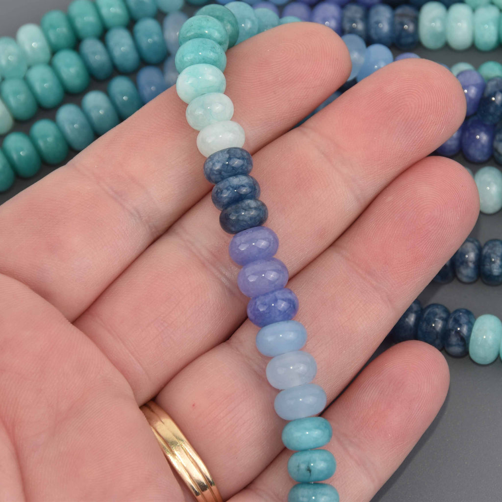 8mm Blue Rondelle Jade Gemstone Beads, mixed colors, 15" strand, gem0929
