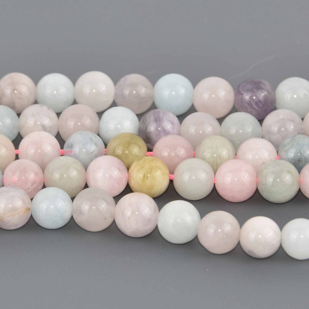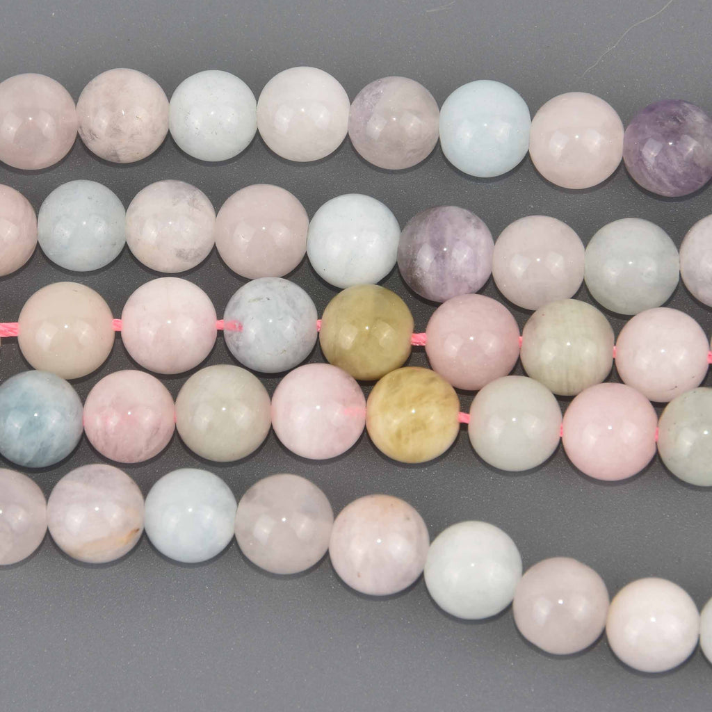 High quality aquamarine, morganite, and amethyst beads, smooth polished surface.