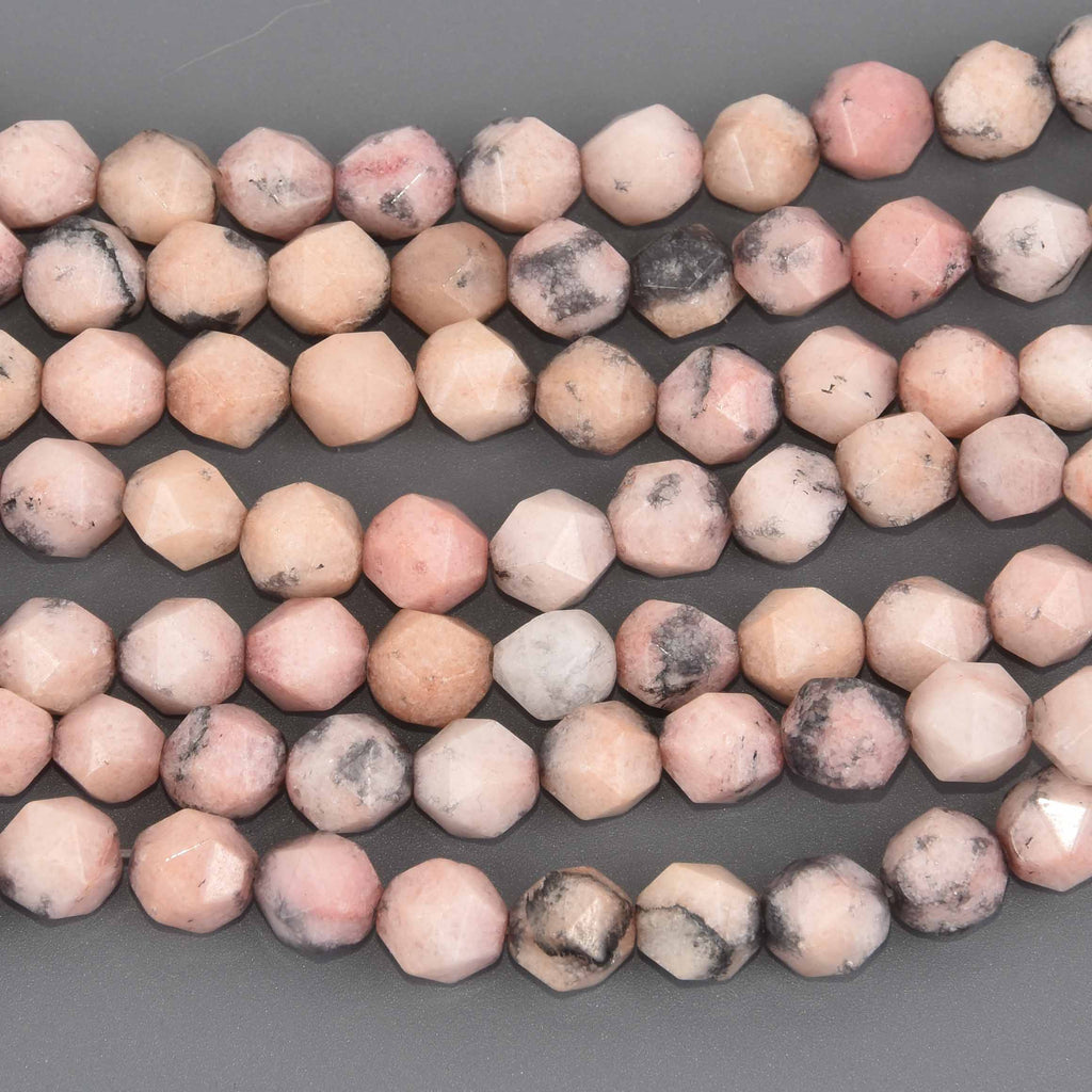 8mm Rhodonite Gemstone Beads, Pink Star Cut Round, 7.5" strand, gem0934