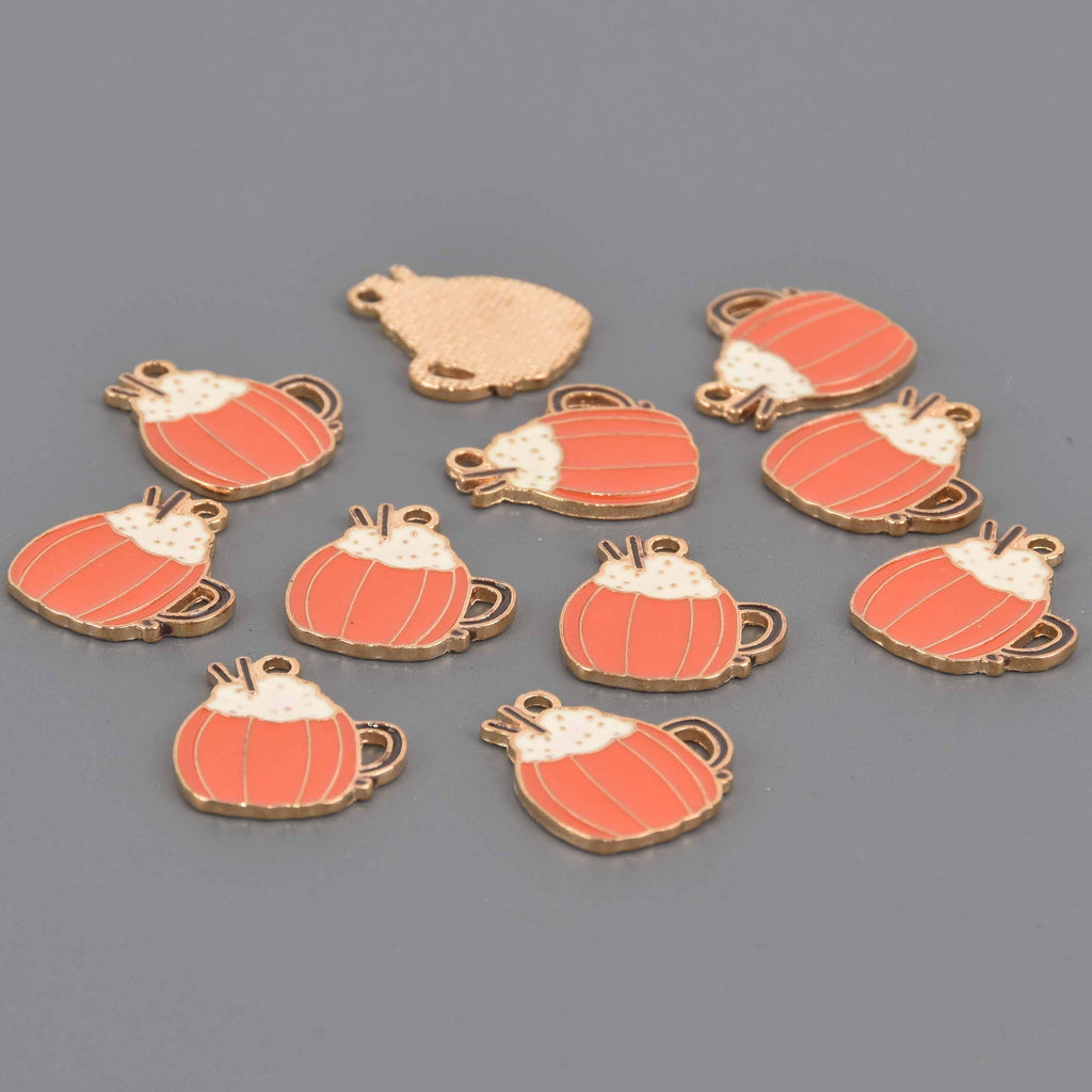 Pumpkin Charms for Fall and Halloween, Enamel, gold plated, chs8623