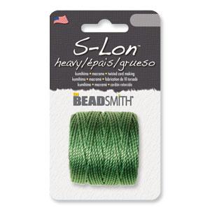 S-Lon heavy cord is 0.9mm 3-ply twisted, bonded multi-filament nylon cord. Ideal for 6/0 seed beads in both kumihimo and macrame.