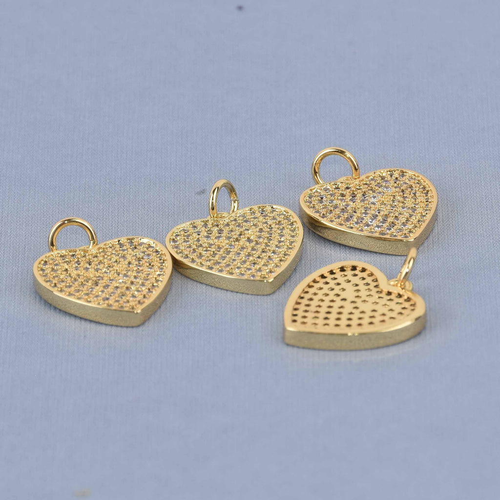 1 Gold Heart Charm, Micro Pave Gold Plated, 14mm, chs8521