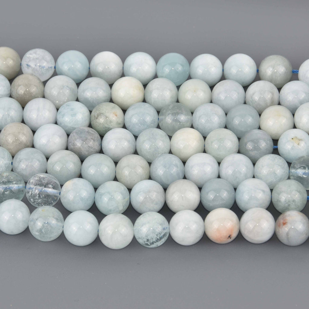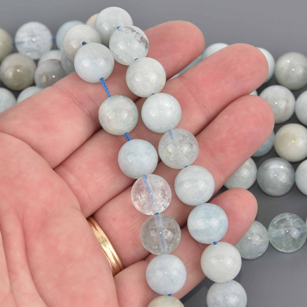 10mm Blue Aquamarine Gemstone Beads, Round Smooth, 16" strand, gem0890