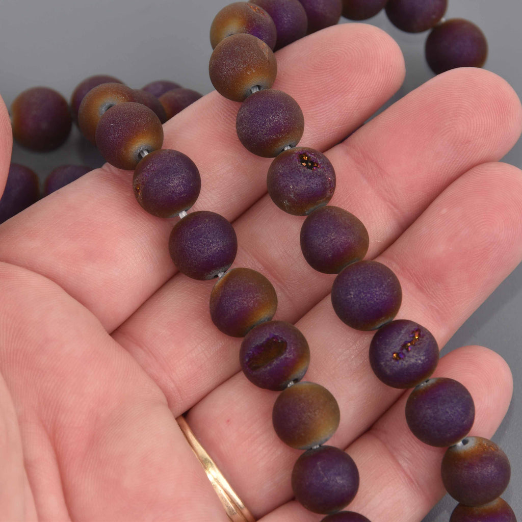 Looking for something truly unique? These natural agate druzy beads have a titanium coating to give them a lovely pop of color. Each bead has a peek-a-boo opening where you can see sparkling druzy crystals on or inside the stone.
