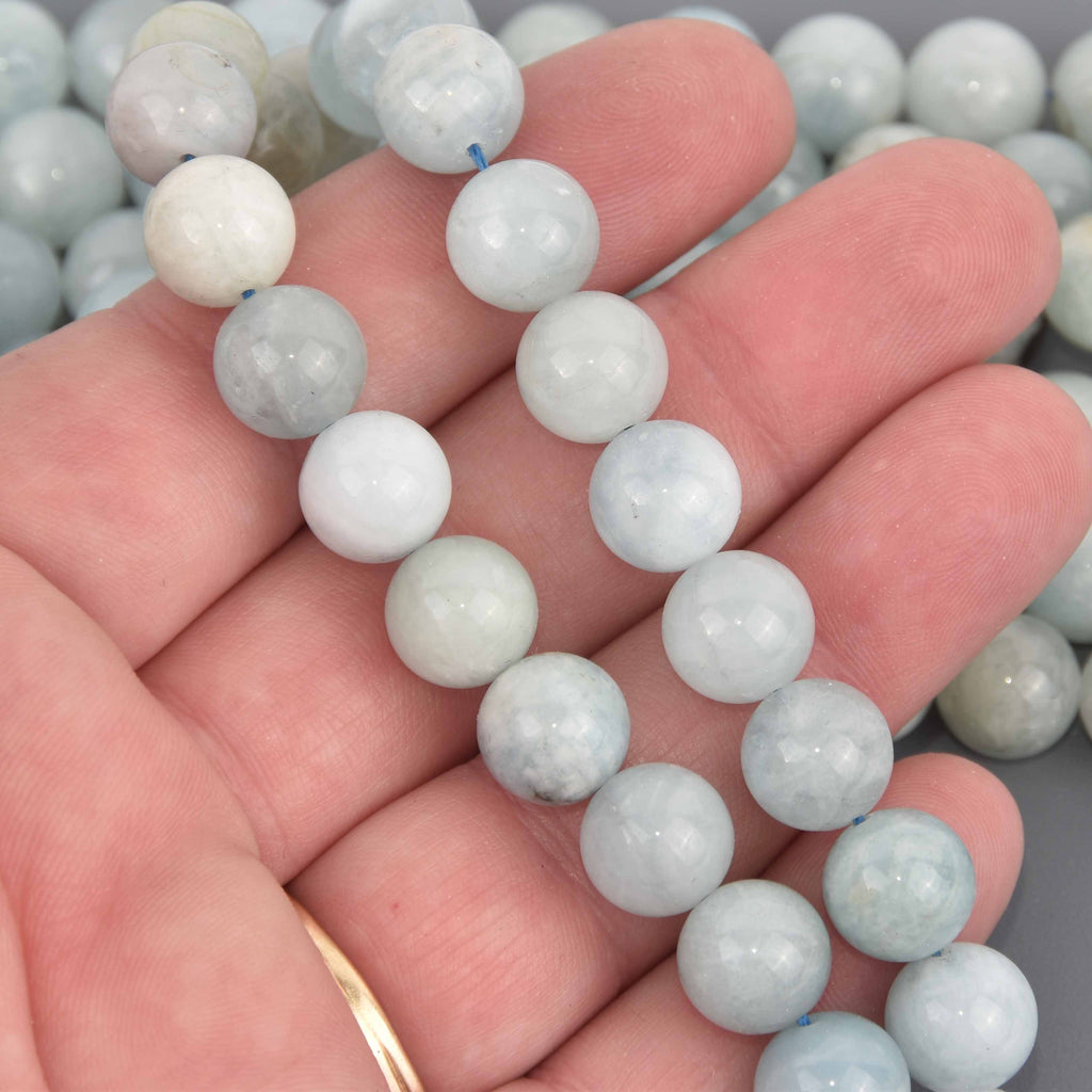 12mm Blue Aquamarine Gemstone Beads, Round Smooth, 16" strand, gem0889