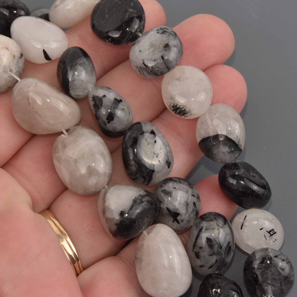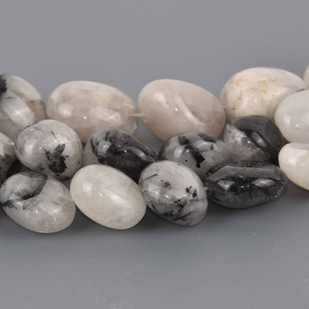 15mm-20mm Tourmalinated Quartz Pebble Gemstone Beads, 7.75" strand, gem0963