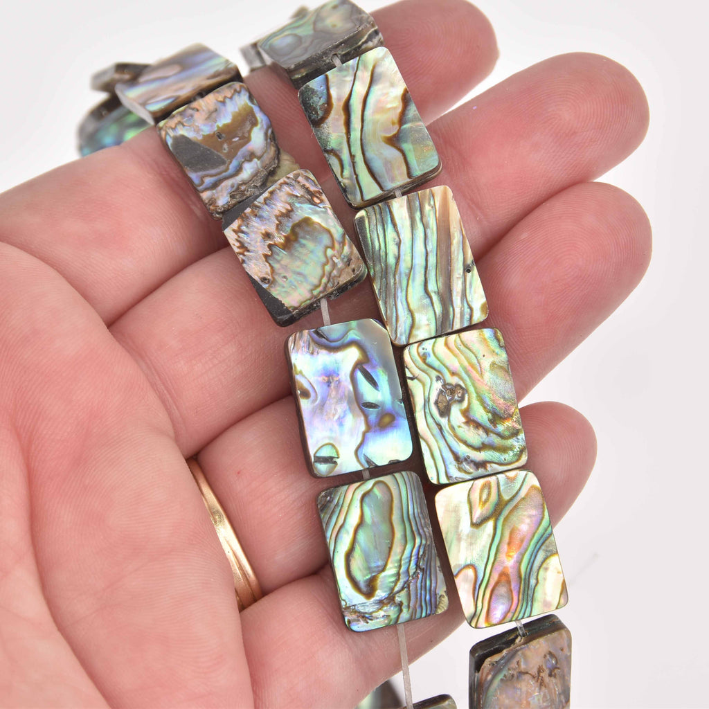 18mm Abalone Shell Beads, Flat Smooth Rectangle, double sided, 16" strand, gem0886