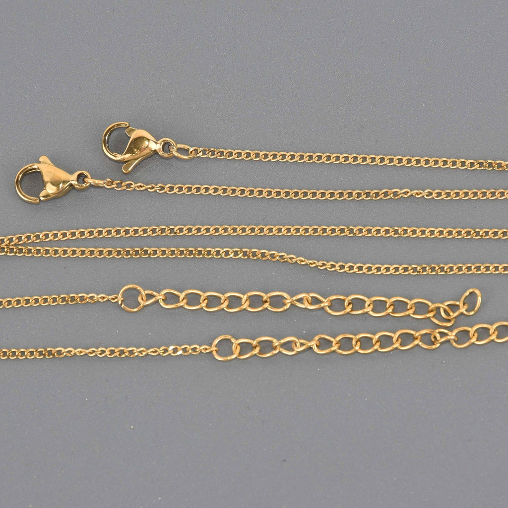 2 Gold Stainless Steel Curb Link Necklace Chains, 17.5" to 19.5" long, 1.7x1.5mm links, fch1361a