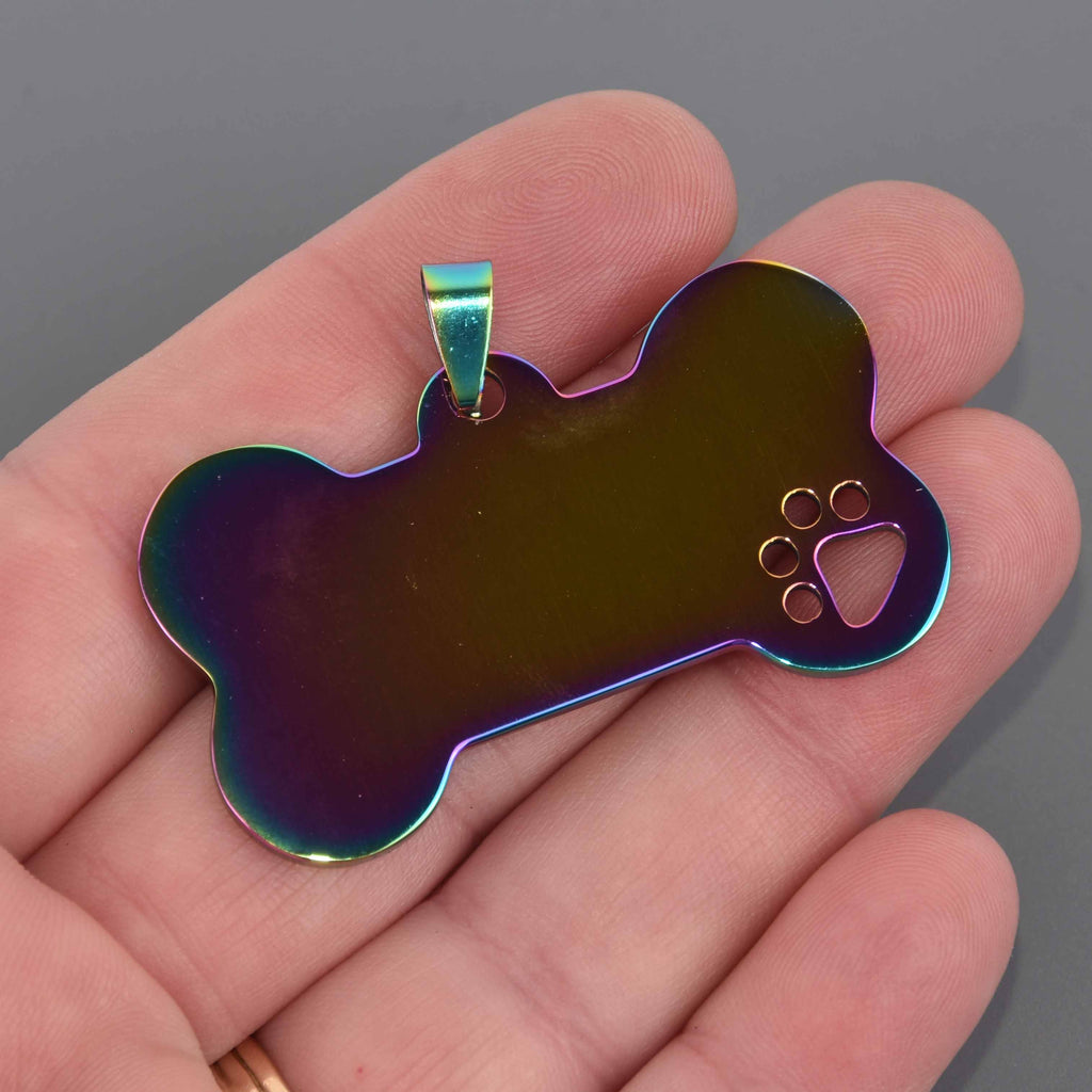 2 Rainbow Stainless Steel Pet Tag Charms, 2", chs8572