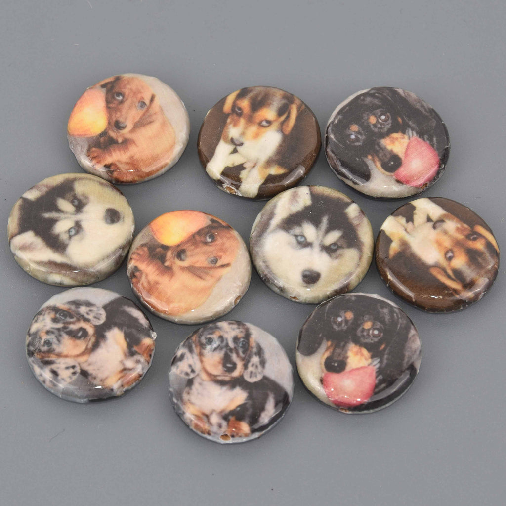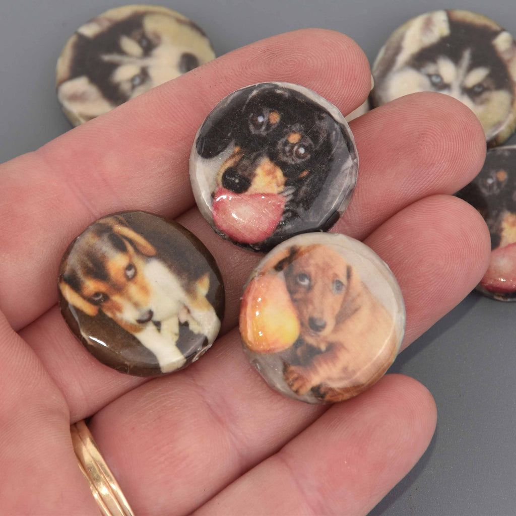 25mm Dog Beads, paper mache coin, 5 beads, bwd0084