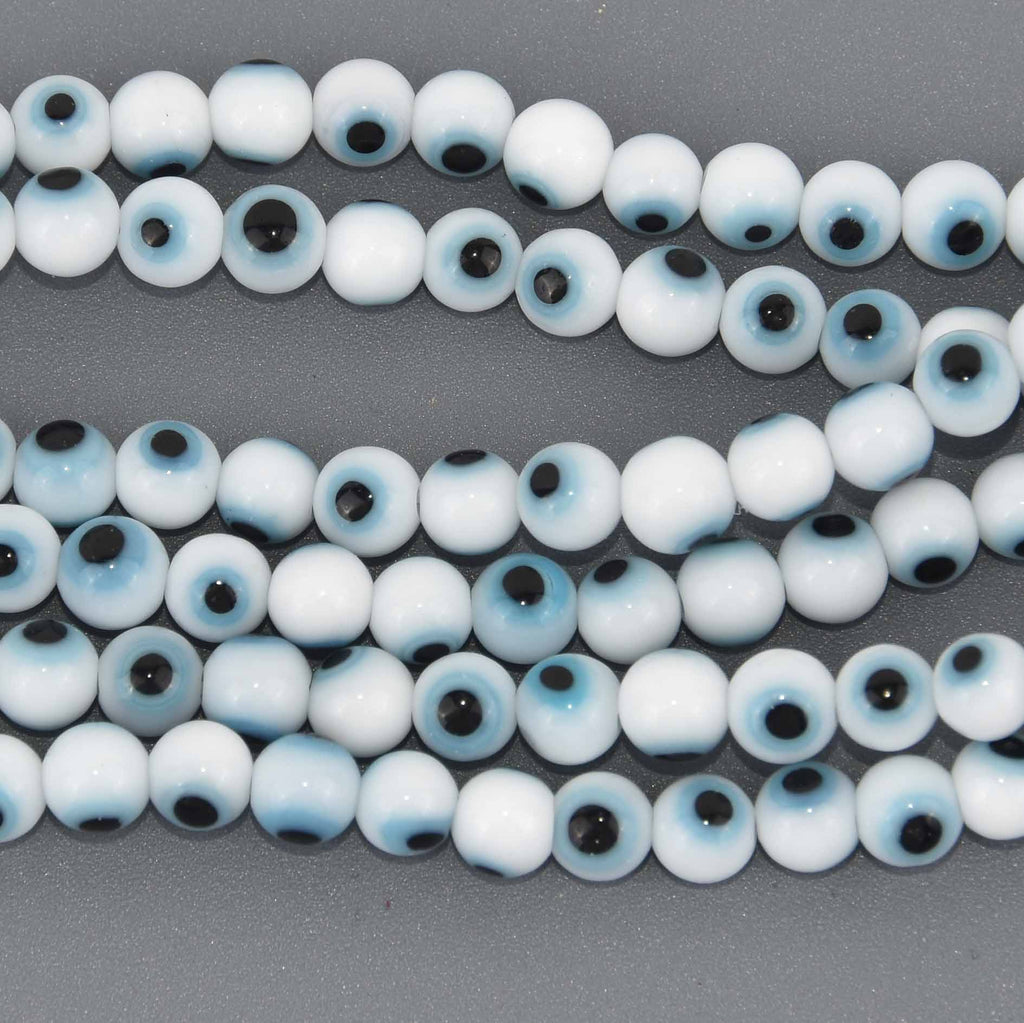 4mm Evil Eye Beads, round glass, white and blue strand, bgl2141
