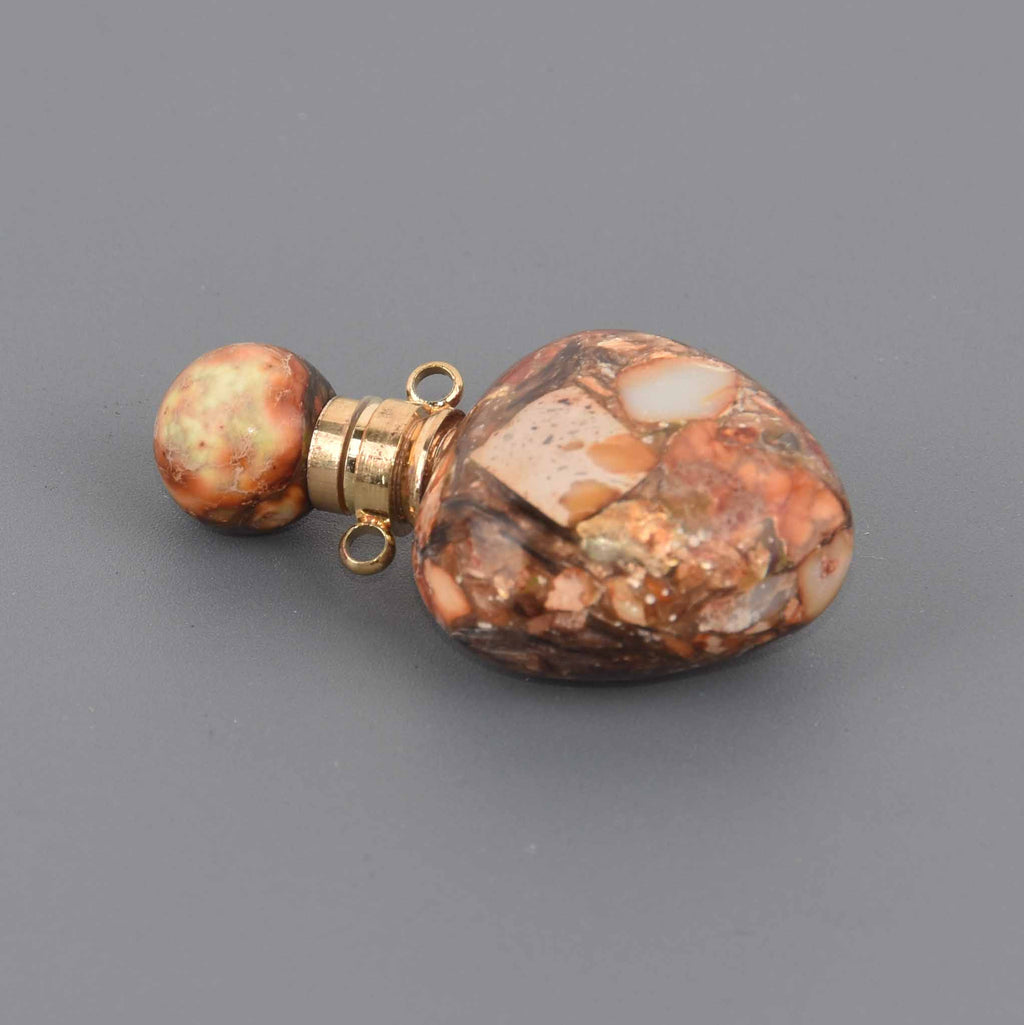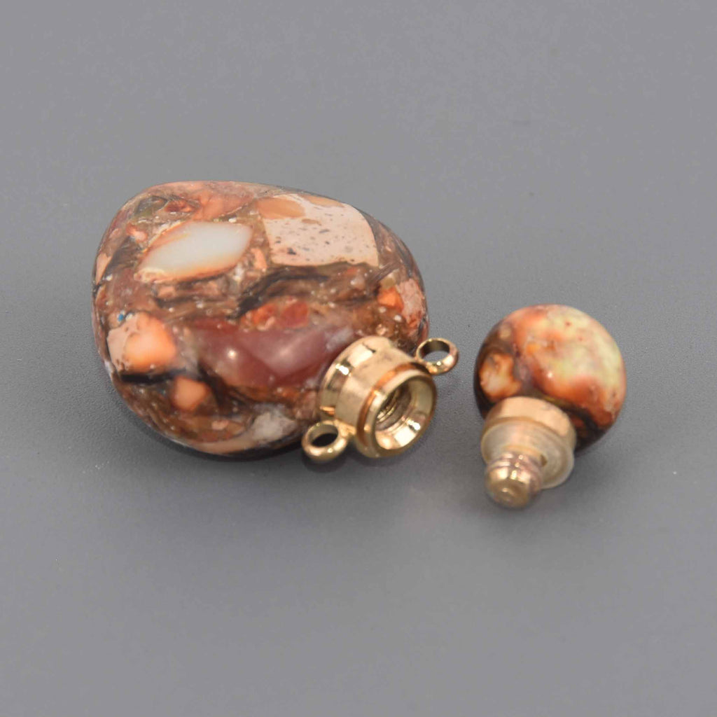 The gemstone top screws off to reveal a small vial that you can fill with essential oils, perfume, cremation ashes, etc.