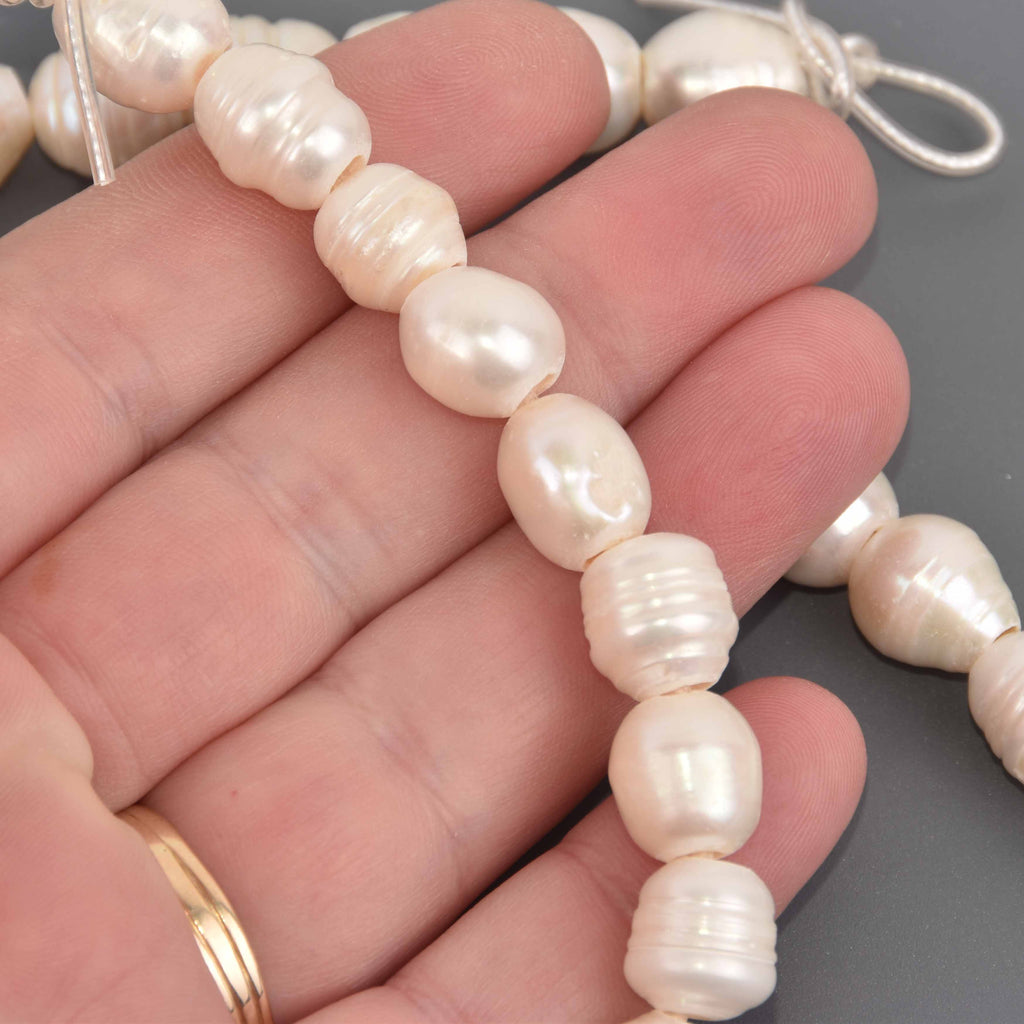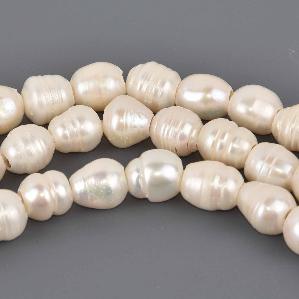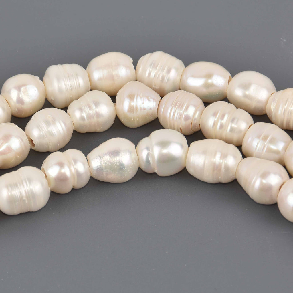 Large White Baroque Pearl Beads, 11mm to 12mm, 2mm hole, 6.25" strand, gem0962