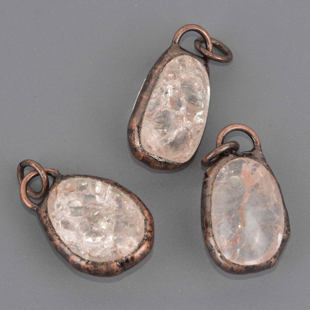 Quartz Gemstone Pendant, copper with puffed oval stone, chs8628