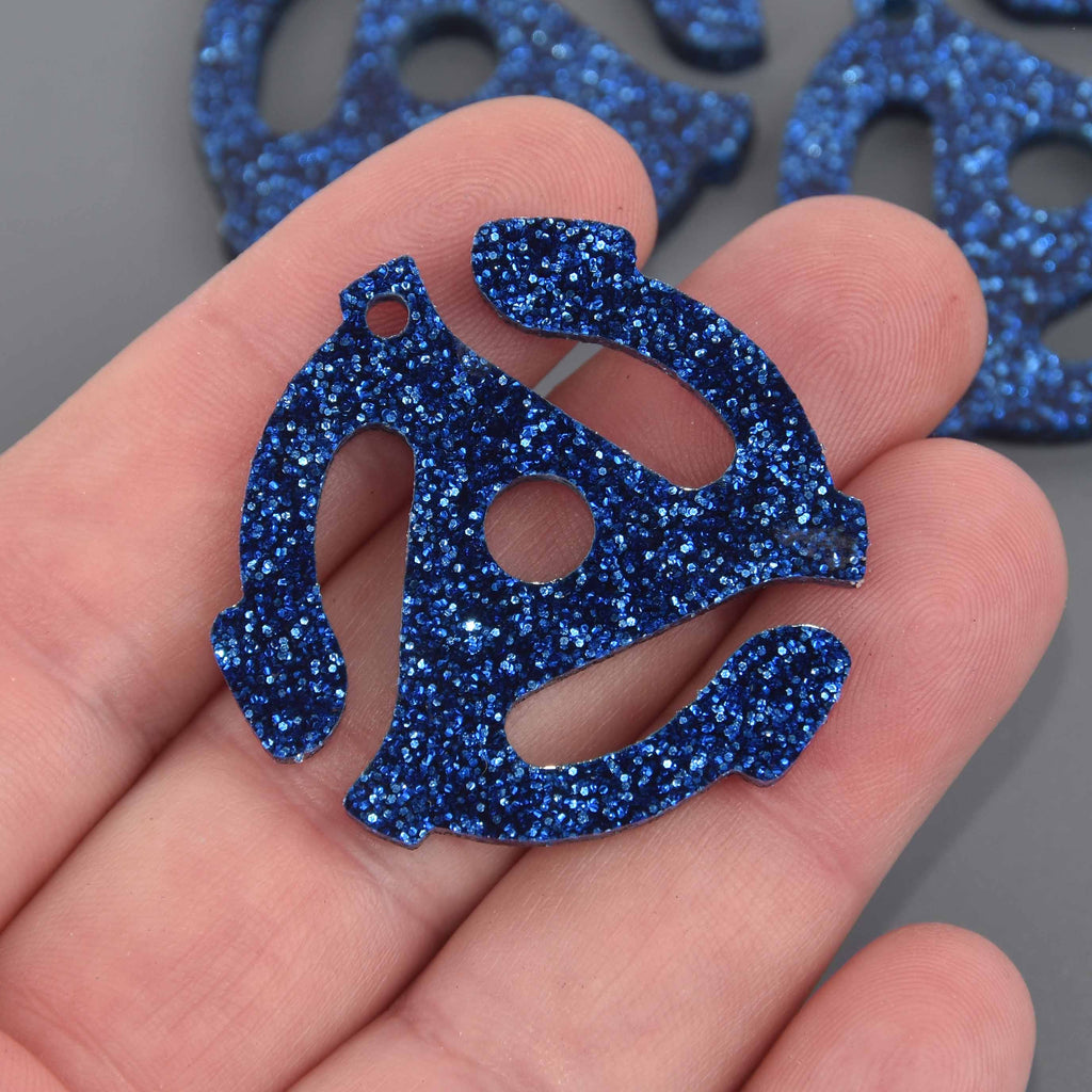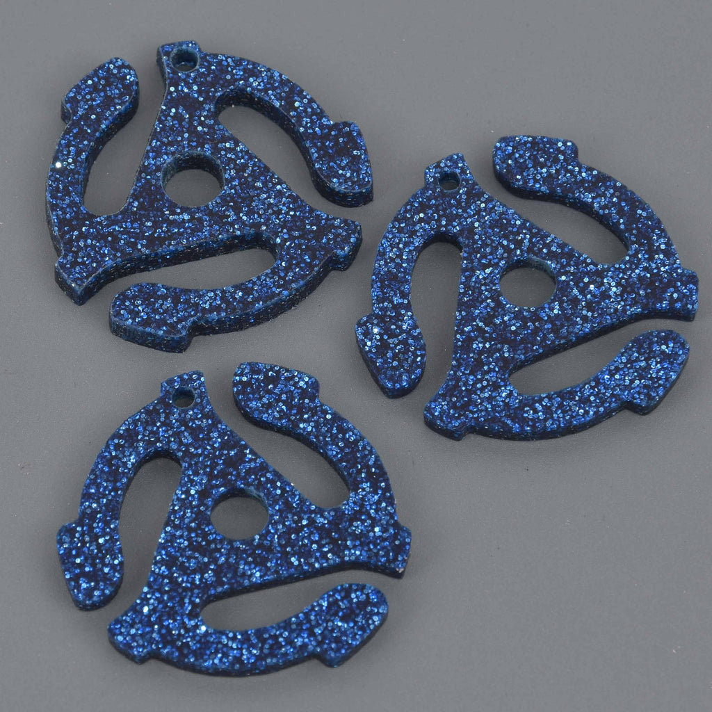 Laser cut glitter acrylic in the shape of the 45-record spider adapter. It's roughly the same size as the original.