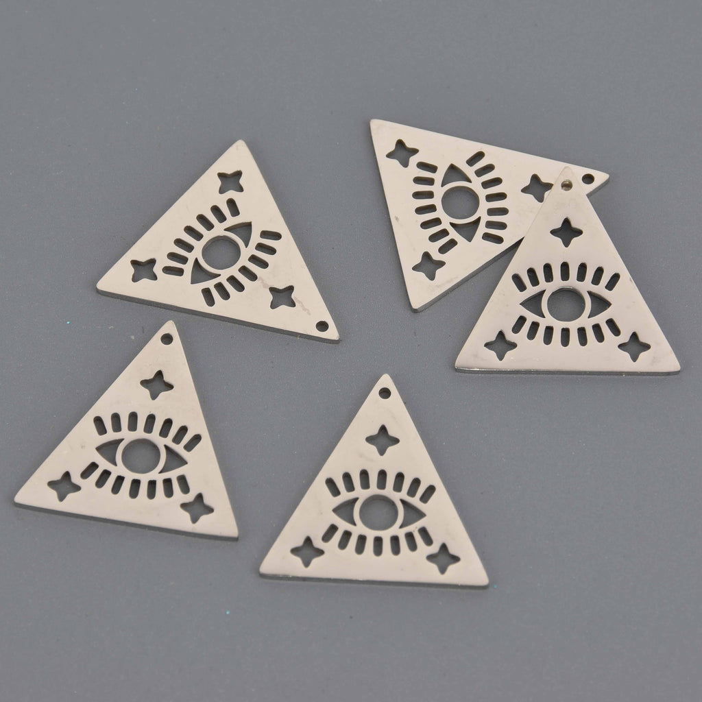 Add a bold, symbolic accent to your handmade jewelry designs with this stainless steel triangle evil eye charm, featuring precision laser-cut details and a clean, modern finish. This unique pendant combines powerful symbolism with minimalist geometric style, making it an excellent choice for jewelry makers, designers, and crafters who want their pieces to stand out.