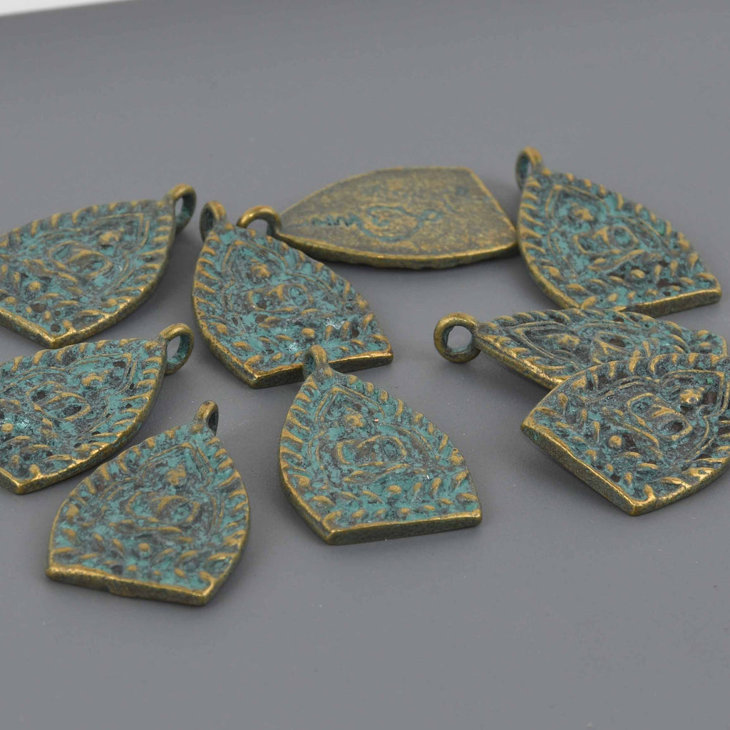 THAI BUDDHA charms, blue green and bronze pewter, religious icon, chs8660