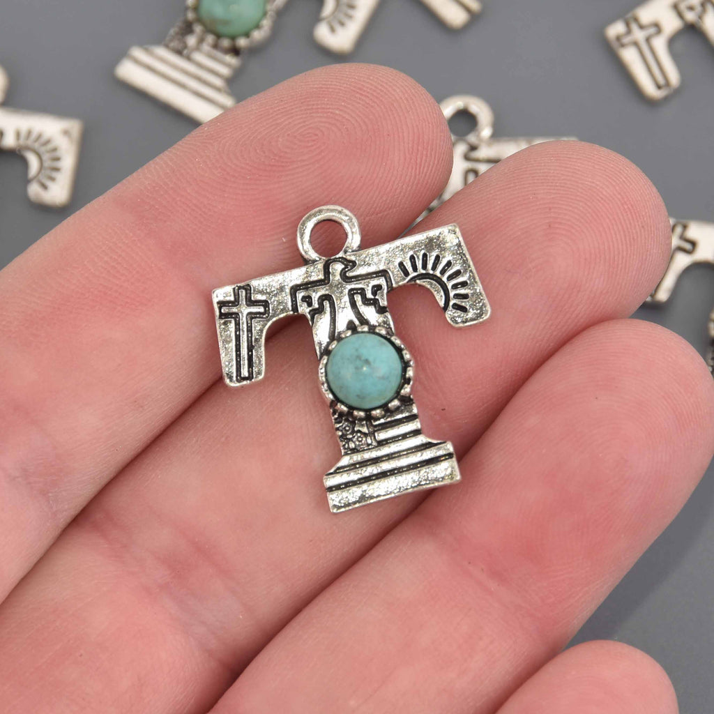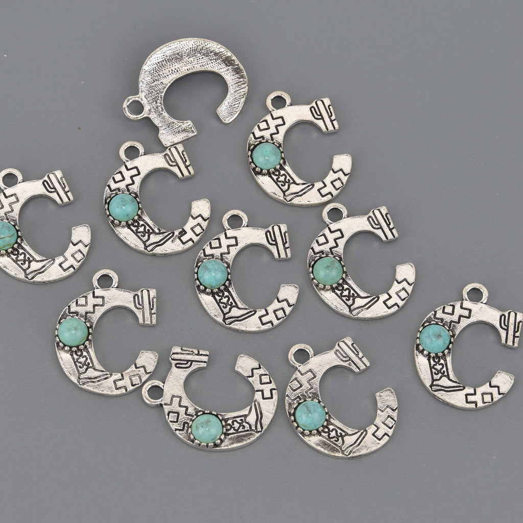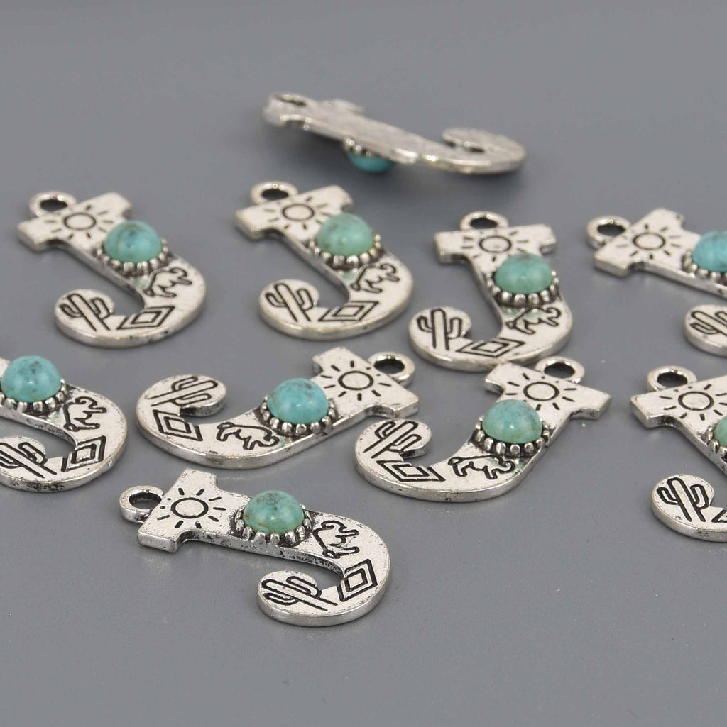 🌵 Boho Alphabet Letter Charms — Antique Silver with Turquoise Resin • Bohemian Jewelry Supplies